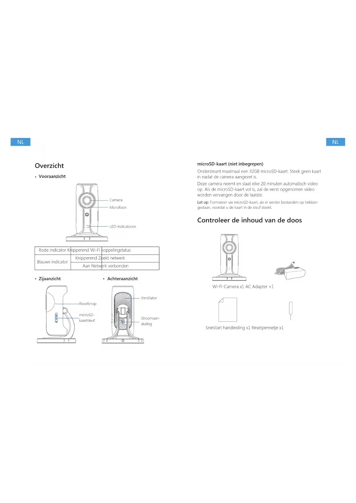 Wi-Fi-Camera x1 AC Adapter x1Snelstart handleiding x1 Resetpennetje x1