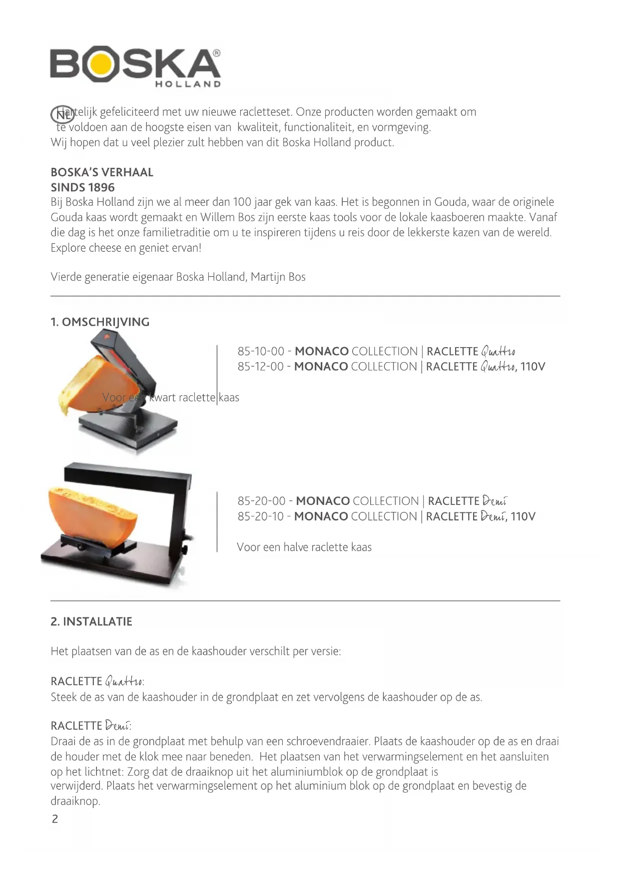 Hantelijk gefeliciteerd met uw nieuwe racletteset. Onze producten worden gemaakt om te voldoen aan de hoogste eisen van kwaliteit, functionaliteit, en vormgeving.