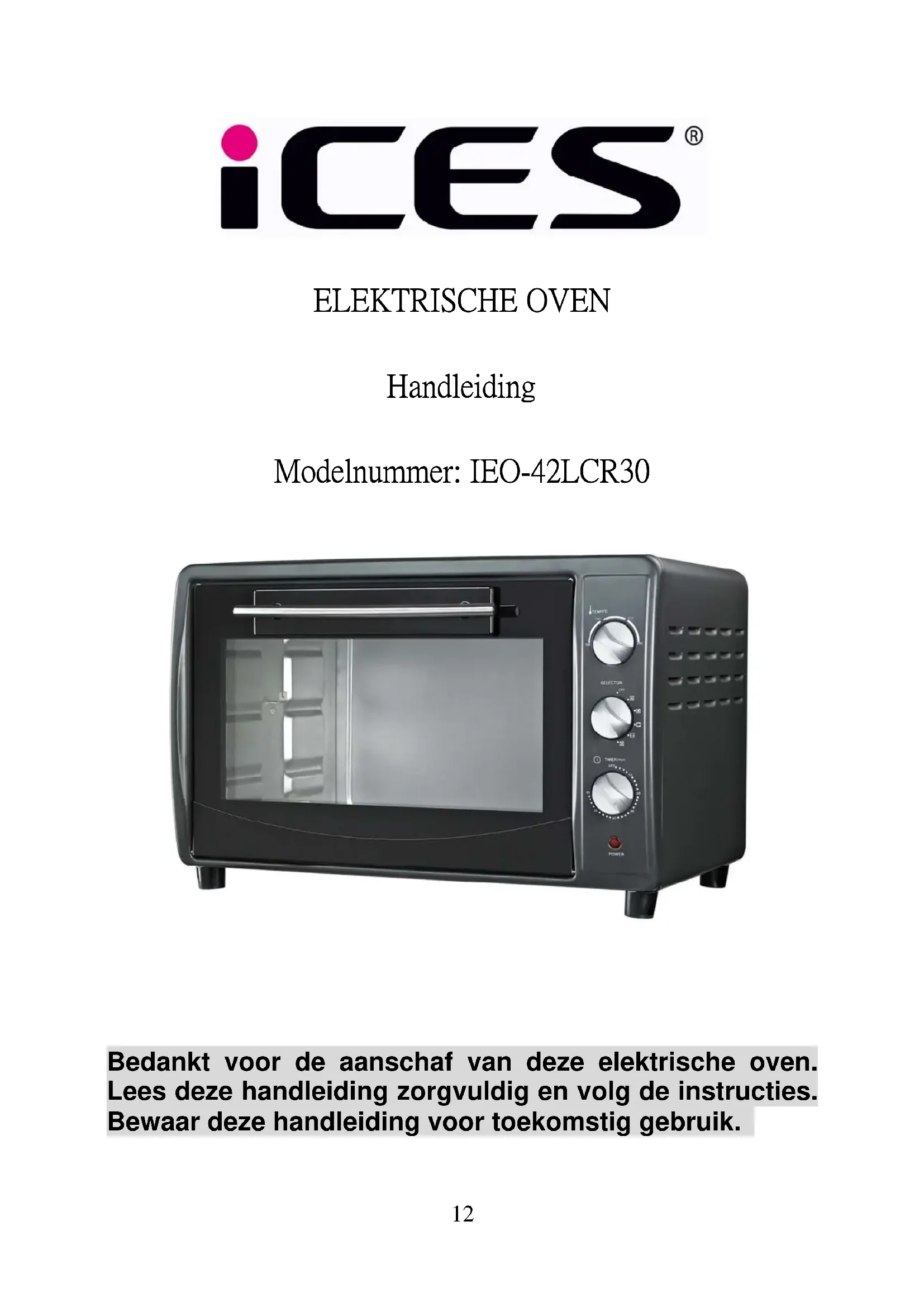 Bedankt voor de aanschaf van deze elektrische oven. Lees deze handleiding zorgvuldig en volg de instructies. Bewaar deze handleiding voor toekomstig gebruik.13