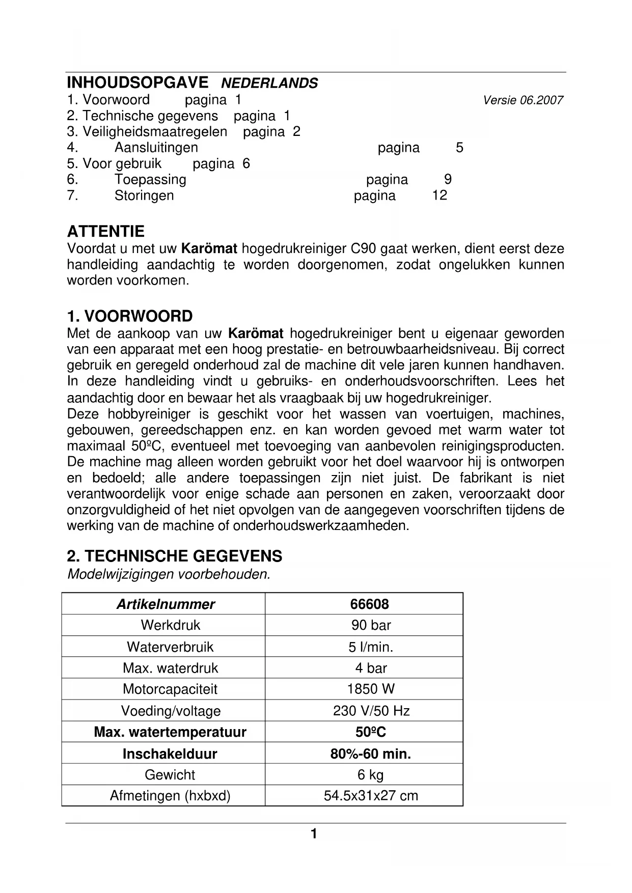 Met de aankoop van uw Karömat hagedrukreiniger bent u eigenaar geworden van een apparaat met een hoog prestatie- en betrouwbaarheidsniveau. Bij correct gebruik en geregeld onderhoud zal de machine dit vele jaren konnen handhaven. In deze handleiding vindt u gebruiks- en onderhoudsvoorschriften. Lees het aandachtig door en bewaar het als vraagbaak bij uw hagedrukreiniger.