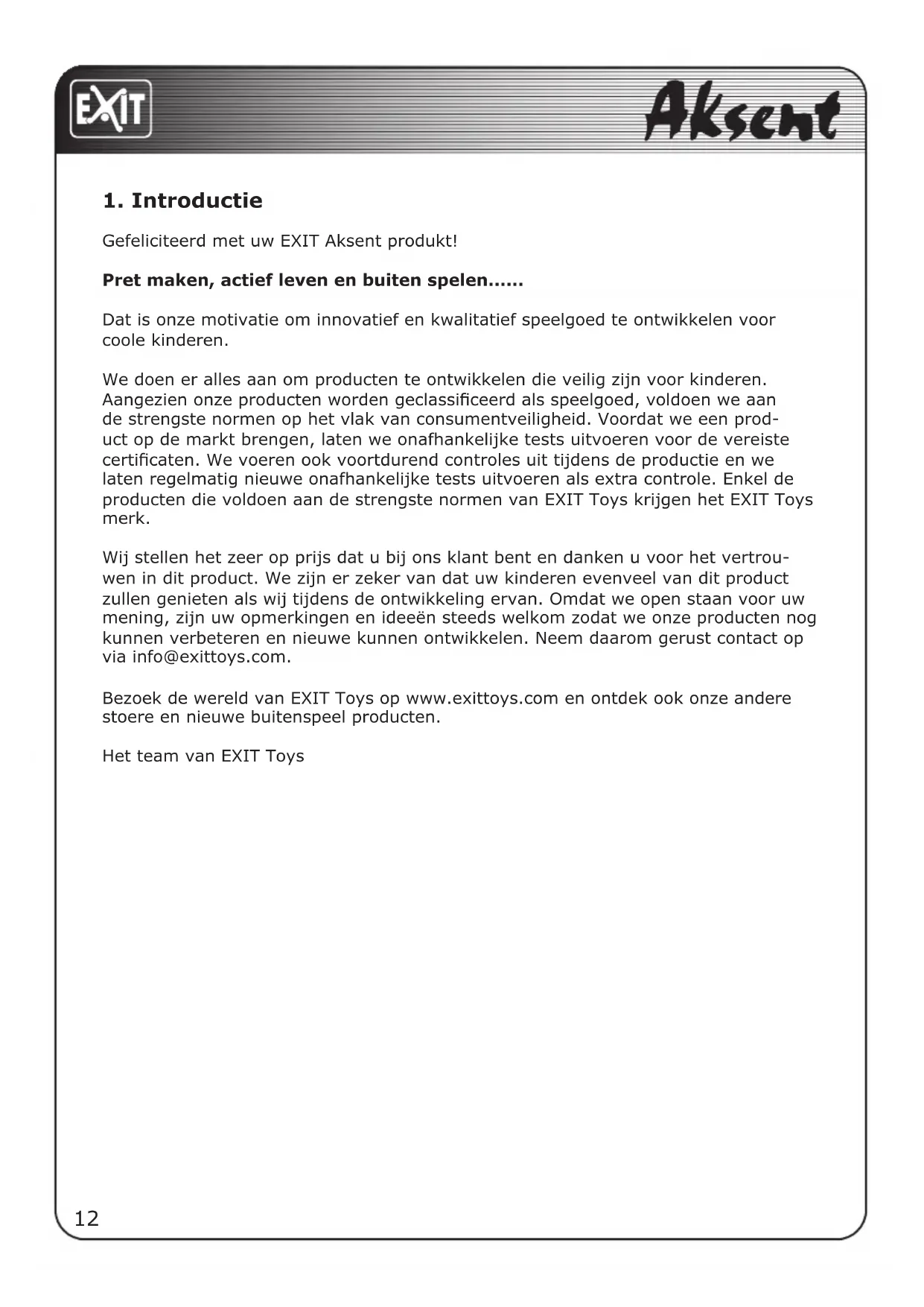 Gefeliciteerd met uw EXIT Aksent produit!