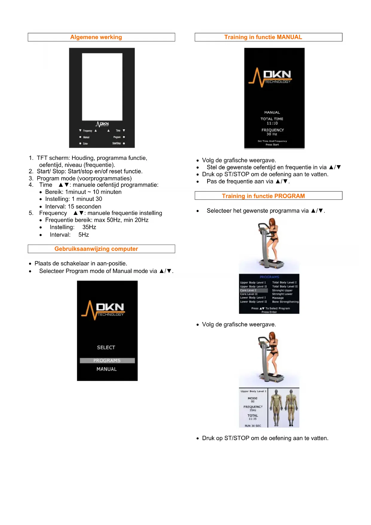 DKN-Technology biedt een 'value for money' platform, met 'authentic vertical vibration'. De enige母公司 Whole Body Vibration wordt gegenereerd door de op & neer beweging. Heel wat varianten circuleren in de markt, ondermeer het "oscillating" (of balancerend) platform. Dit is een volledig andere beweging, en beantwoordt Niet aan het wetenschappelijk karakter van Whole Body Vibration. Je heb namelijk een vertikale verplaatsing nodig om spieren optimal te konnen stimuleren.