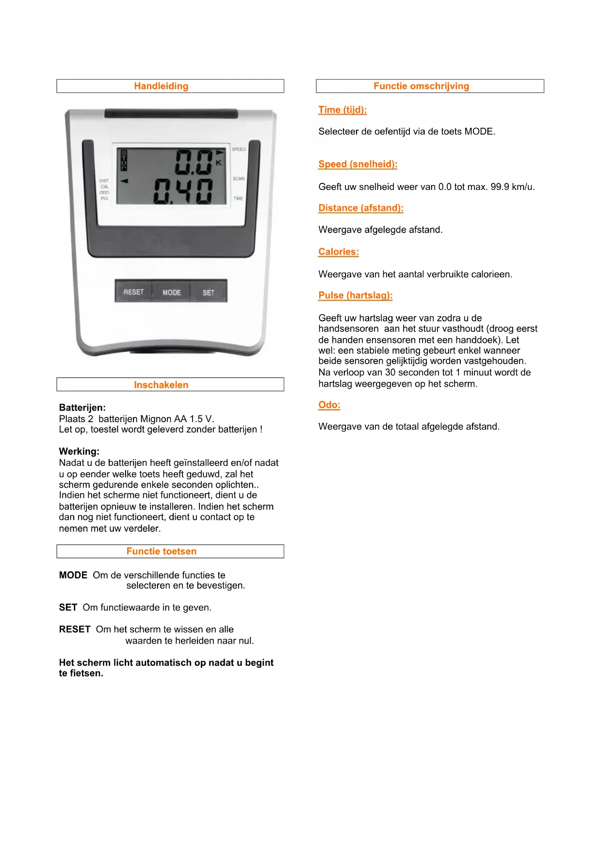 Let op, toestel worden geleverd zonder batterijen!