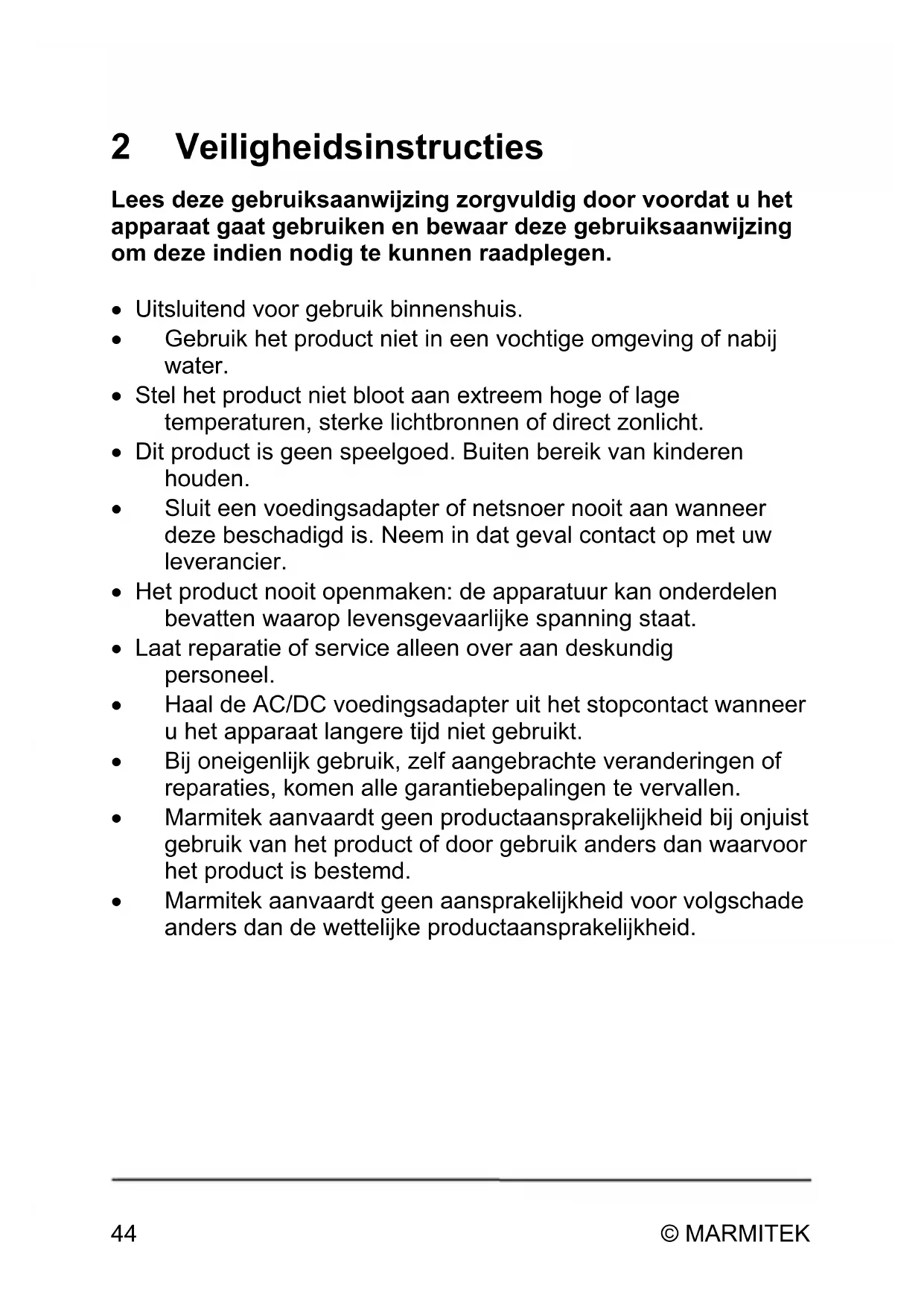 Marmitek aanvaardt geen productaansprakelijkheid bij onjuist gebruik van het product of door gebruik anders dan waarvoort het product is bestemd.
