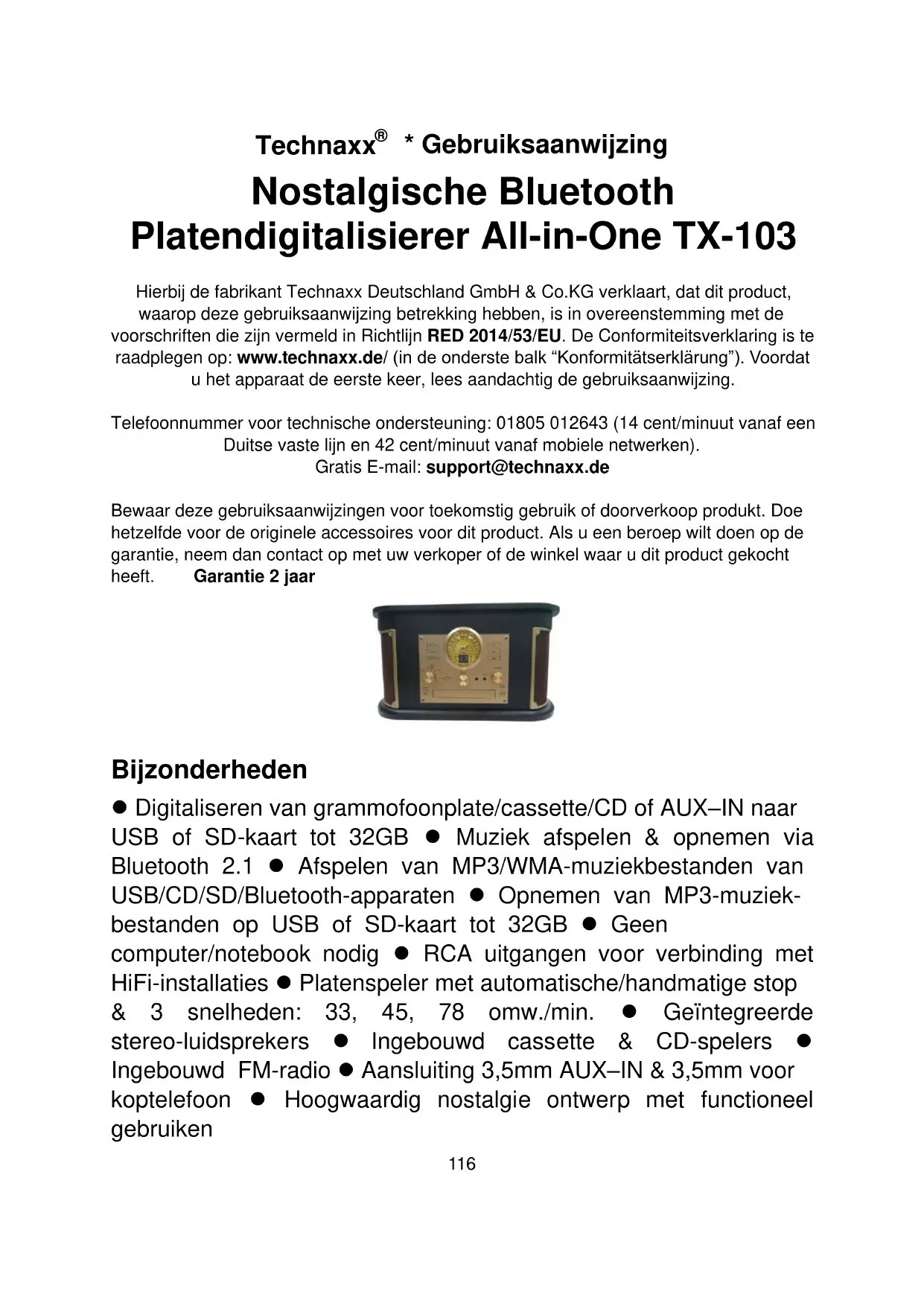 TX103 - Platenspeler TECHNAXX - Gratis gebruiksaanwijzing en handleiding