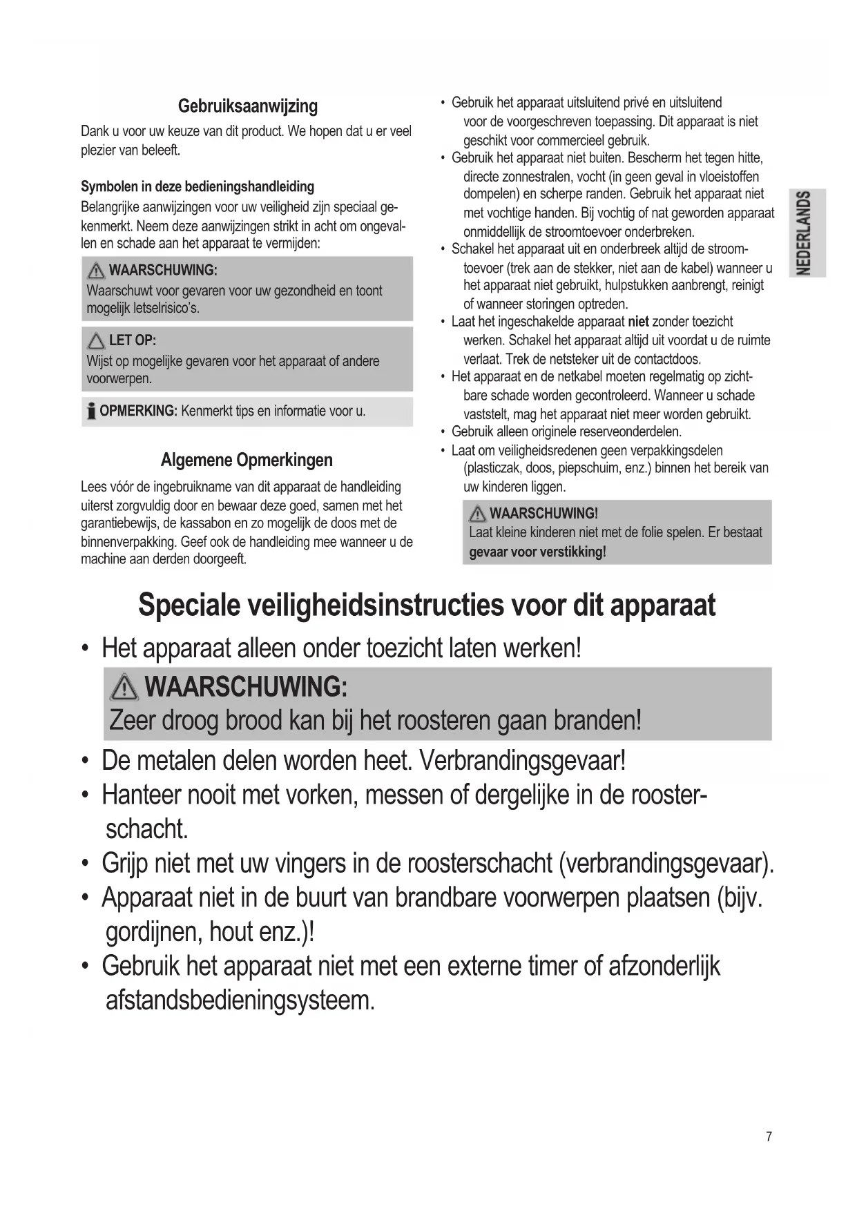 - Hanteer nooit met vorken, messen of dergelijkke in de roosterschacht.