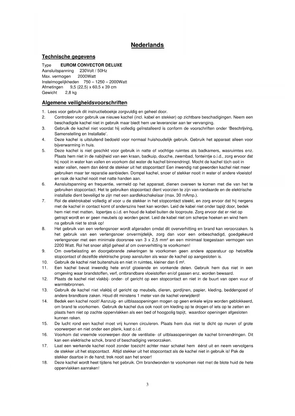 GEBRUIKSAANWIJZING Convector Deluxe Eurom