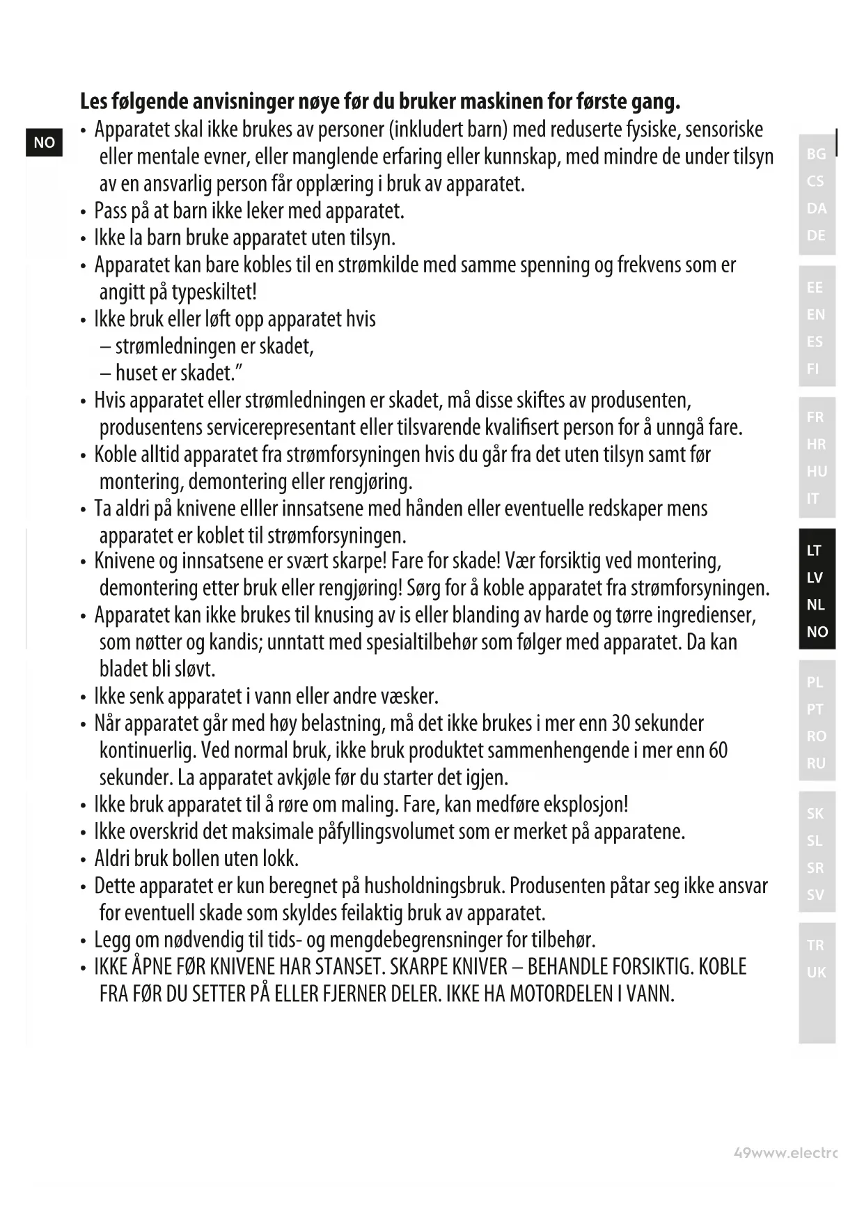 NL GEBRUIKSAANWIJZING NO BRUKSANVISNING