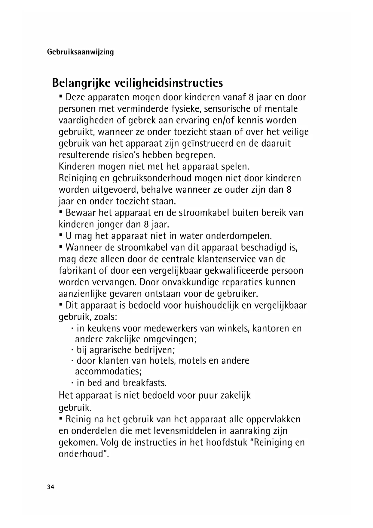 Reiniging en gebruiksonderhoud mogen nicht door kinderen worden uitgevoerd, behalve wanner ze ouder zichn dan 8 jaar en onder toezicht staan.