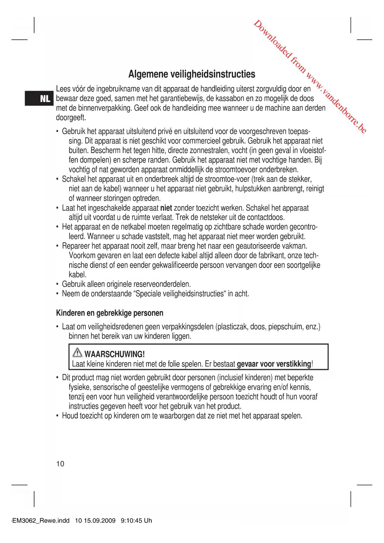 - Houd toezicht op kinderen om te waarborgen dat ze niet met het apparaat spelen. 05-EM3062_Rewe.indd 10 15.09.2009 9:10:45 Uhr Downloaded from www.vandenborre.beNL