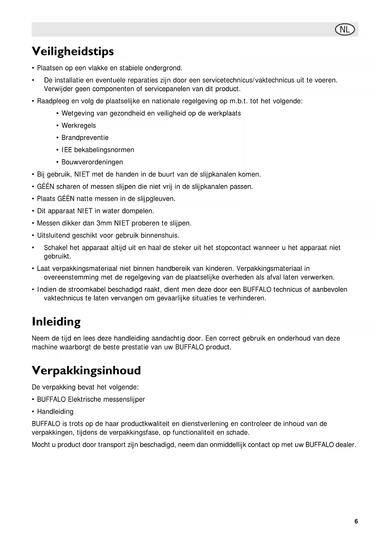 - Indien de stroomkabel beschadigd raakt, dient men deutsche door een BUFFALO technicus of aanbevolen vaktechnicus te latentervangen om gevaarlijke situatuies te verhinderen.