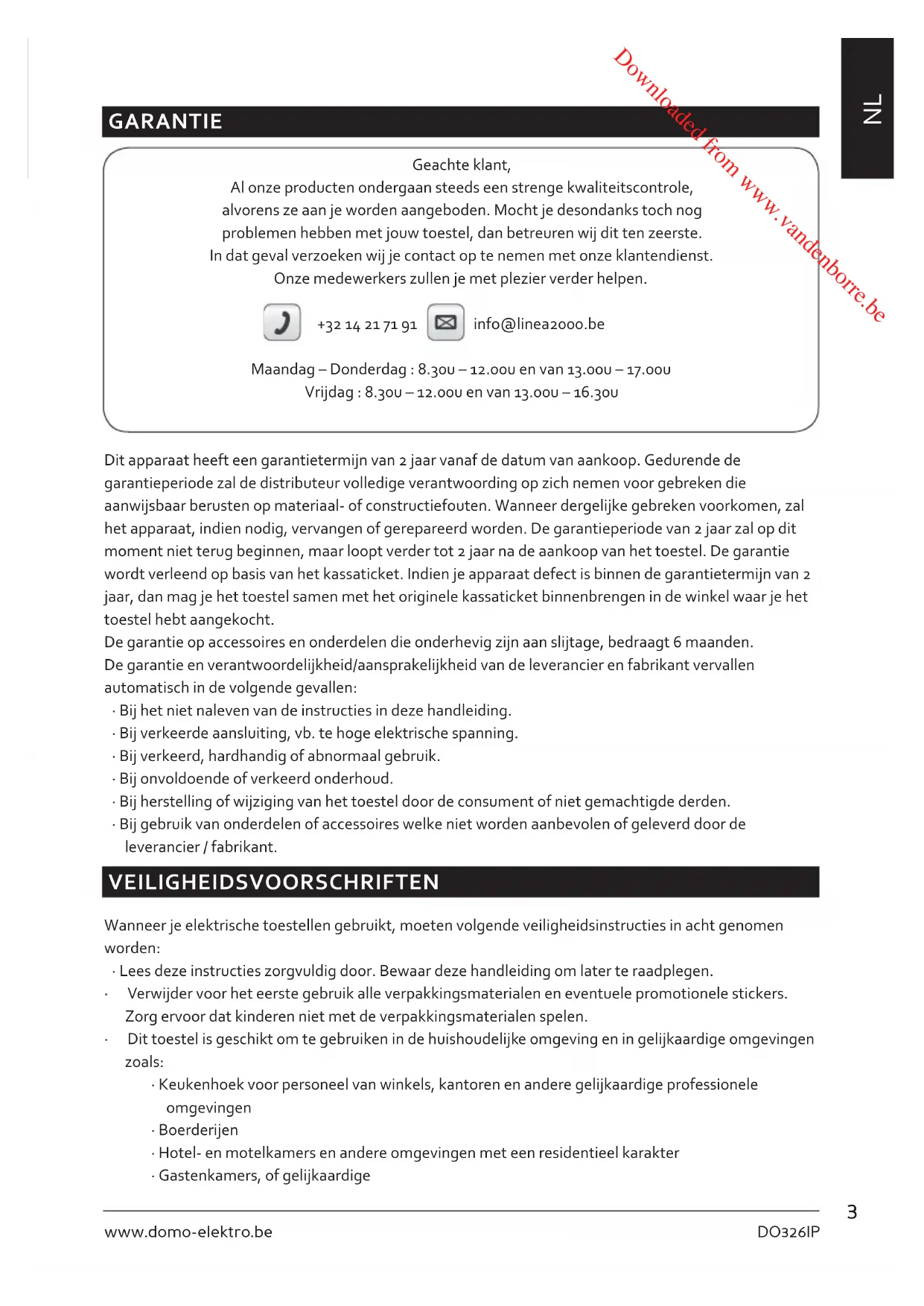 GEBRUIKSAANWIJZING DO326IP DOMO