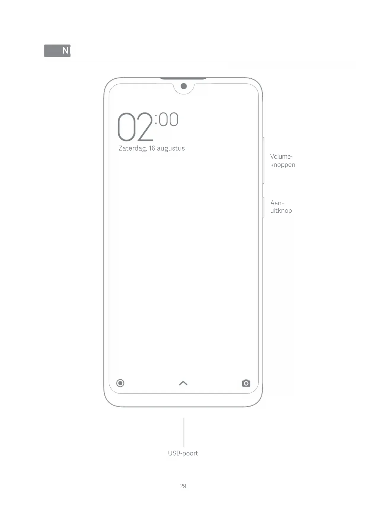 Gebruik uw telefoon niet op plekken met een hoge vochtigheid, zoals badkamers. Als u dit wel doet, kan dit elektrische schokken, letsel, brand en schade aan de oplader veroorzaken. RED-conformiteitsverklaring33 Frequentiebanden en vermogen Deze mobiele telefoon kan gebruikmaken van de volgende frequenties in EU-zones en biedt het volgende maximale radiofrequentievermogen: GSM 900: 35 dBm GSM 1800: 32 dBm UMTS-band 1/8: 25 dBm LTE-band 1/3/7/8/20/38/40: 25,7 dBm Bluetooth: 20 dBm Wifi 2,4 GHz-band: 20 dBm FCC-voorschrien Deze mobiele telefoon voldoet aan deel 15 van de FCC-voorschrien. De bediening van het apparaat is onderhevig aan de twee volgende voorwaarden: (1) Dit apparaat mag geen storingen veroorzaken en (2) dit apparaat moet alle ontvangen storing aanvaarden, met inbegrip van storingen die een ongewenste werking kunnen veroorzaken. Deze mobiele telefoon is getest en voldoet aan de limieten voor een digitaal apparaat van de klasse B, overeenkomstig deel 15 van de FCC-voorschrien. Deze limieten zijn opgesteld om een redelijke bescherming te bieden tegen storende interferentie in een woonwijk. Dit apparaat genereert en gebruikt radiogolven en kan mogelijk radiogolven uitzenden die communicatie via radiogolven kunnen verstoren wanneer dit apparaat niet volgens de instructies wordt geïnstalleerd en gebruikt. Er is echter geen garantie dat er geen storing zal optreden in een bepaalde installatie. Er is echter geen garantie dat er geen storing zal optreden bij radio of tv-ontvangst, hetgeen kan worden bepaald door het apparaat uit- en in- te schakelen, raden wij u aan de storing te corrigeren door een of meer van de volgende maatregelen te treffen: Juridische informatie Dit apparaat kan in alle lidstaten van de EU worden gebruikt. Neem de geldende nationale en lokale voorschrien in acht met betrekking tot de locatie waar het apparaat wordt gebruikt. Aankelijk van het lokale netwerk kan het gebruik van dit apparaat zijn beperkt. Zorg ervoor dat de lichtnetadapter voldoet aan de vereisten van clausule 2.5 in IEC60950-1/EN60950-1 en is getest en goedgekeurd overeenkomstig de nationale of lokale normen. Stel de antenne voor ontvangst opnieuw af of verplaats deze. Vergroot de afstand tussen de apparatuur en de ontvanger. Sluit de apparatuur aan op een stopcontact dat behoort tot een andere groep dan de groep waarop de ontvanger is aangesloten. Neem contact op met de dealer of een ervaren radio- of tv-monteur.