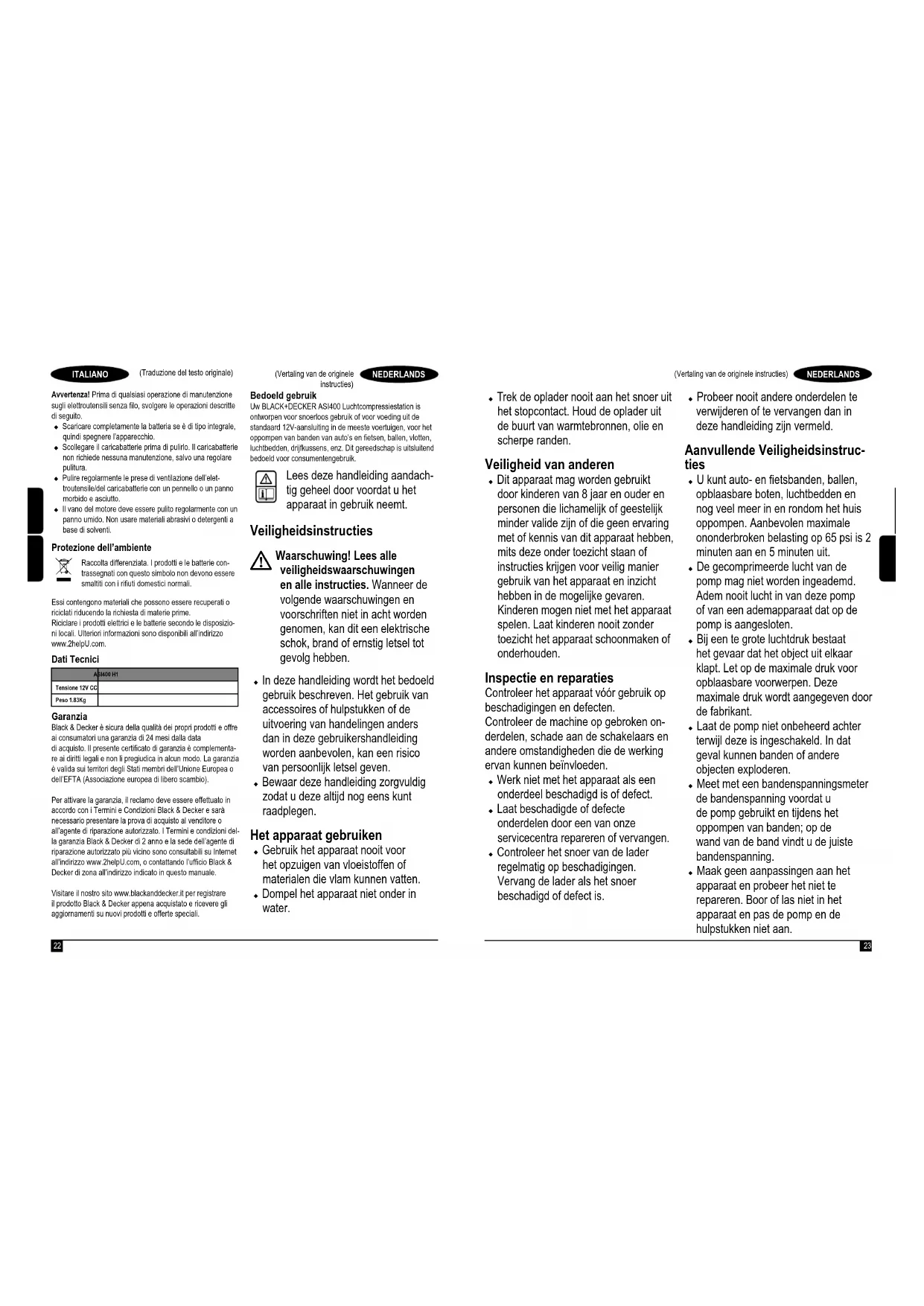 Download de handleiding voor uw Compressor in PDF-formaat gratis! Vind uw handleiding ASI400 - BLACK & DECKER en neem uw elektronisch apparaat weer in handen. Op deze pagina staan alle documenten die nodig zijn voor het gebruik van uw apparaat. ASI400 van het merk BLACK & DECKER.