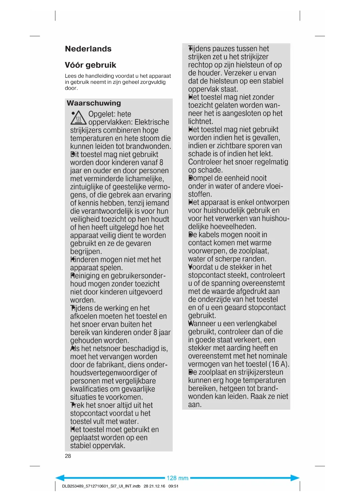 DLB253489_5712710601_SI7_UI_INT.indb 27 21.12.16 09:51Nederlands Vóór gebruik Lees de handleiding voordat u het apparaat in gebruik neemt in zijn geheel zorgvuldig door. Waarschuwing