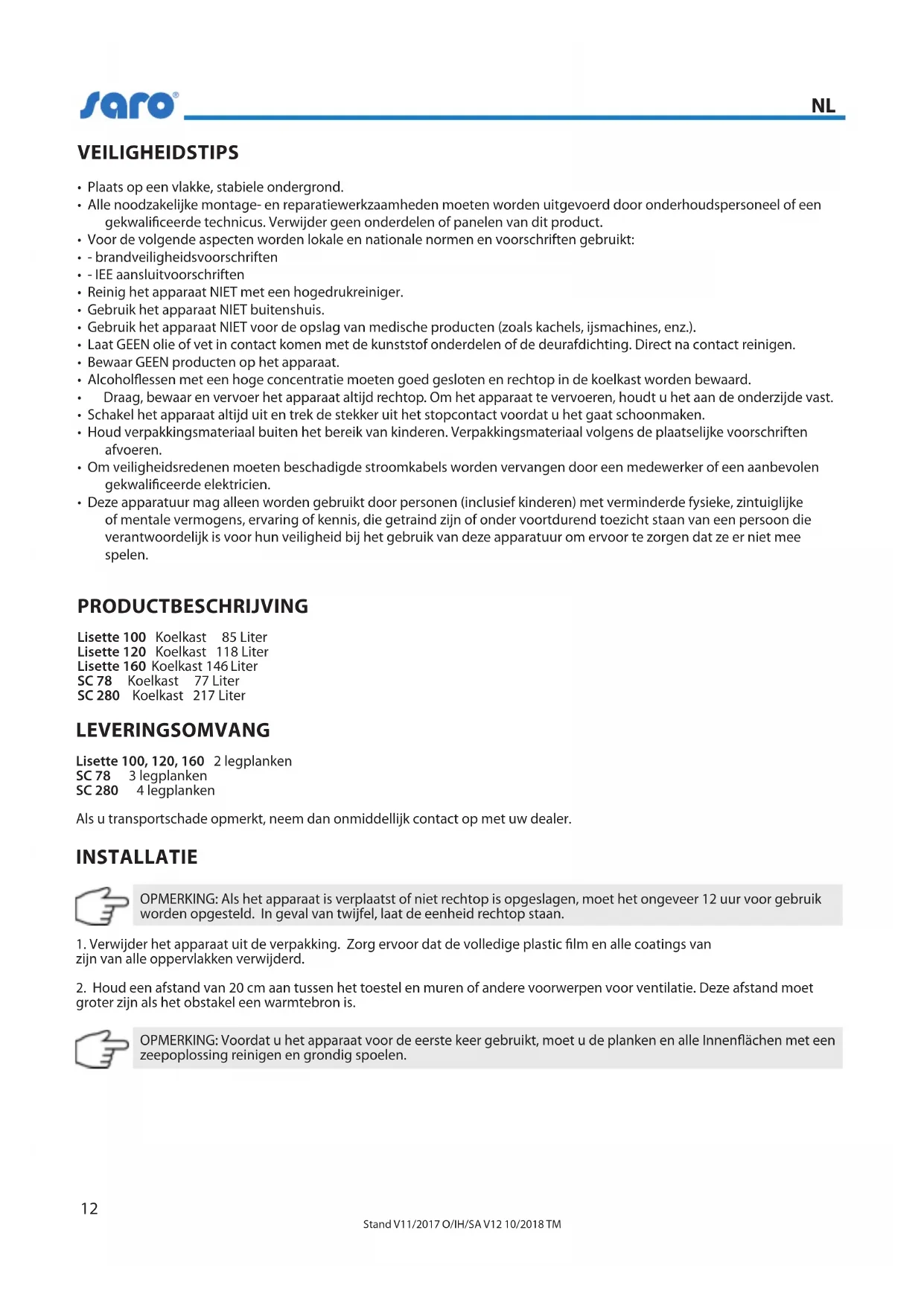 Download de handleiding voor uw Koelkast in PDF-formaat gratis! Vind uw handleiding LISETTE 120 - Saro en neem uw elektronisch apparaat weer in handen. Op deze pagina staan alle documenten die nodig zijn voor het gebruik van uw apparaat. LISETTE 120 van het merk Saro.