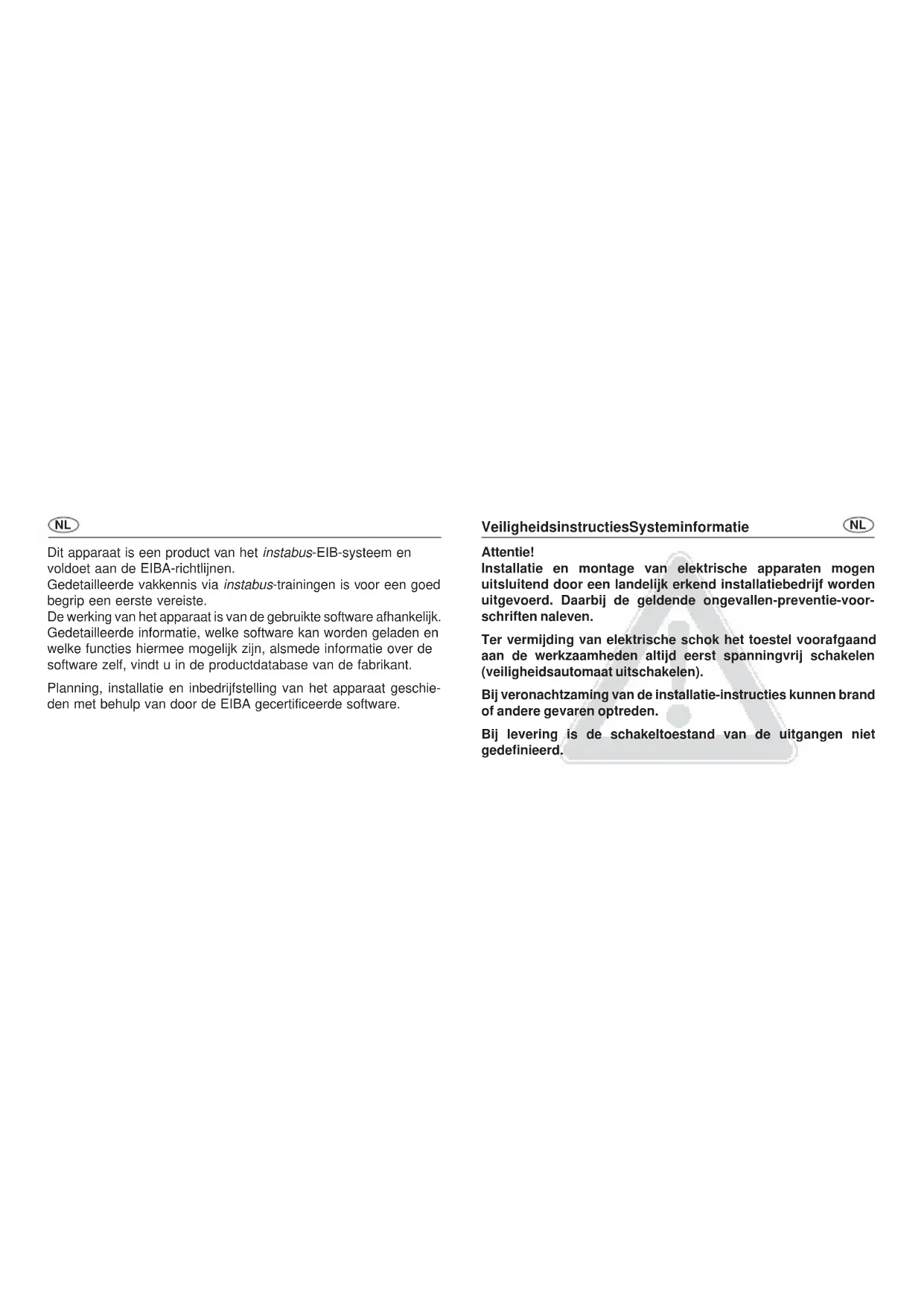 Dit apparaat is een product van het instabus-EIB-systeem en voldoet aan de EIBA-richtlijnen.