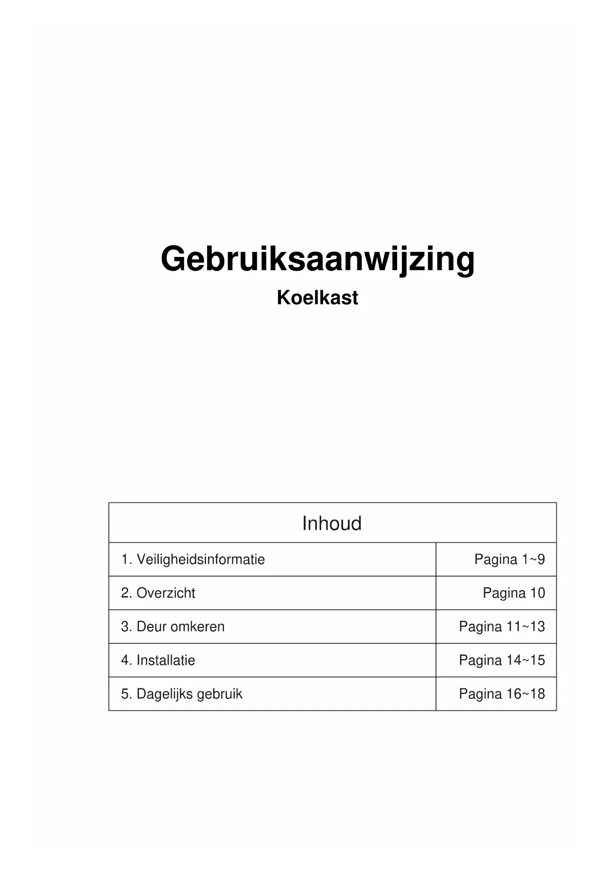 Voorzichtig! Haal de stekker uit het stopcontact voordat u problemen probeert op te lossen. Alleen een gekwalificeerd elektricien of andere competente persoon mag probleemoplossing uitvoeren die niet in deze handleiding staat. Belangrijk! Er zijn enkele geluiden bij normaal gebruik (compressor, koelmiddelcirculatie). Probleem Mogelijke oorzaak Oplossing Het apparaat werkt niet De temperatuurregelingsknop staat op nummer ‘0’. Zet de knop op een ander nummer om het apparaat in te schakelen. De stekker zit niet in het stopcontact of zit los. Steek de stekker in het stopcontact. De zekering is doorgebrand of kapot. Controleer de zekering, vervang indien nodig. Het stopcontact is kapot. Storingen in de netvoeding moeten door een elektricien worden gerepareerd. Het voedingsproduct is te warm De temperatuur is niet goed ingesteld. Raadpleeg de paragraaf over temperatuurinstelling bij het eerste gebruik. De deur stond te lang open. Laat de deur enkel open zolang dit nodig is. De voorbije 24 uur werd een grote hoeveelheid warme voeding in het apparaat gezet. Zet de temperatuurregelaar tijdelijk op een koudere instelling. Het apparaat staat dicht in de buurt van een warmtebron. Raadpleeg de paragraaf ‘Opstelling’. Apparaat koelt overmatig Temperatuur is te koud ingesteld. Zet de temperatuurregelknop tijdelijk op een warmere instelling. Ongewone geluiden Apparaat staat niet waterpas. Stel de pootjes opnieuw in. Het apparaat raakt de muur of andere voorwerpen. Verplaats het apparaat een klein beetje. Een onderdeel aan de achterkant van het apparaat, bijv. een leiding, raakt een ander onderdeel van het apparaat of de muur. Buig dit component indien nodig voorzichtig om, zodat het geen contact meer maakt. Als de storing weer zichtbaar is, neem dan contact op met het Service Center.Instrukcje użytkownika Chłodziarka Spis treści