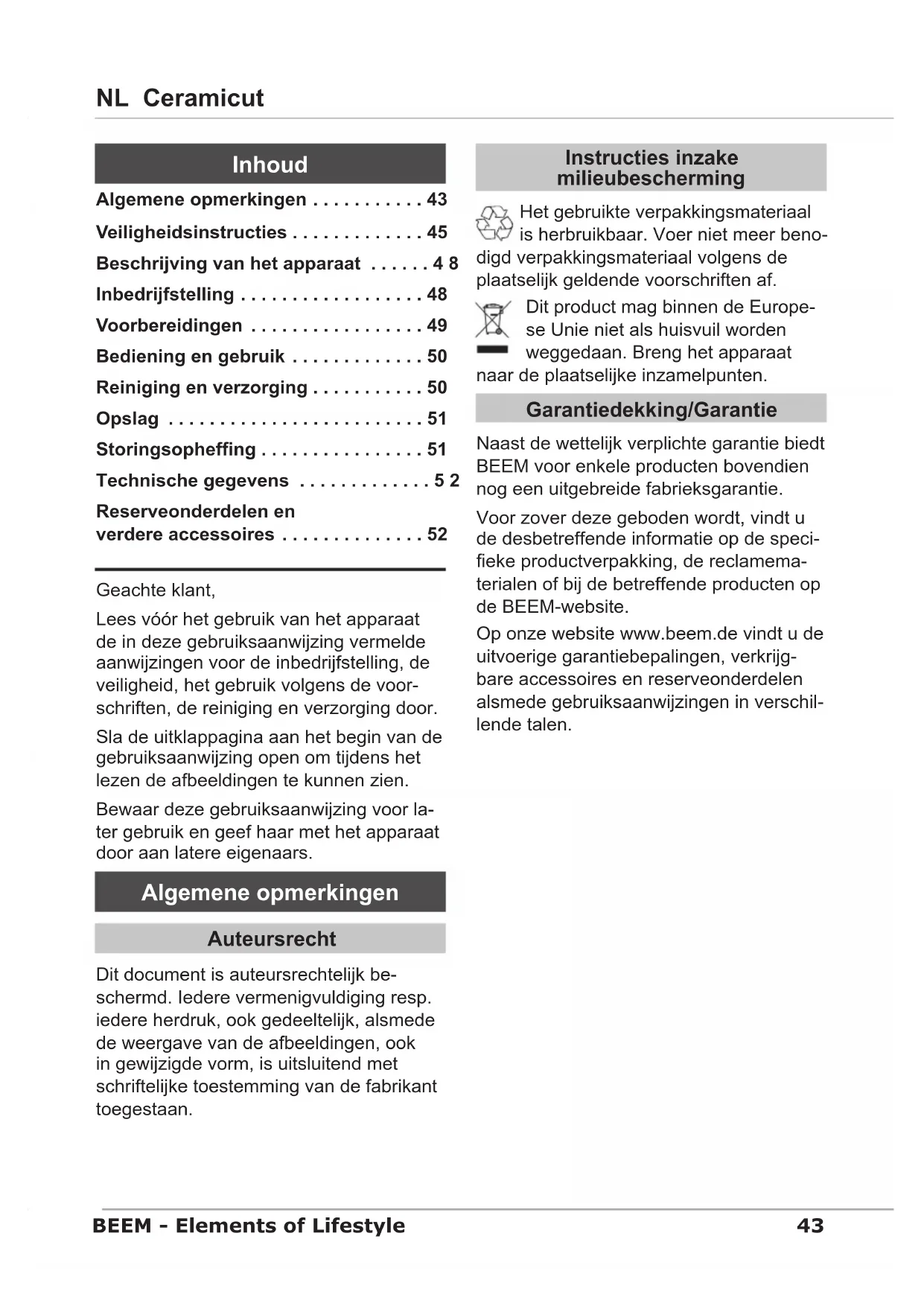 Op onze website www.beem.de vindt u de uitvoerige garantiebepalingen, verkrijgbare accessoires en reserveonderdelen alsmede gebruiksaanwijzingen in verschillende talen.