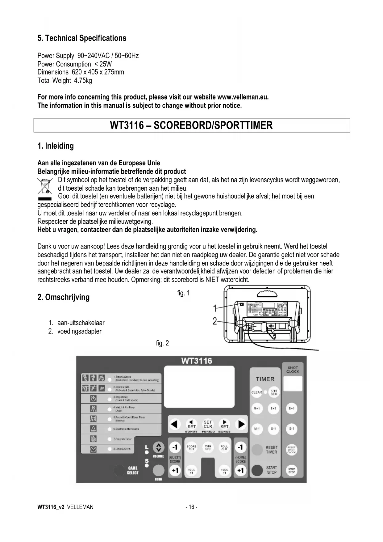 GEBRUIKSAANWIJZING WT3116 VELLEMAN
