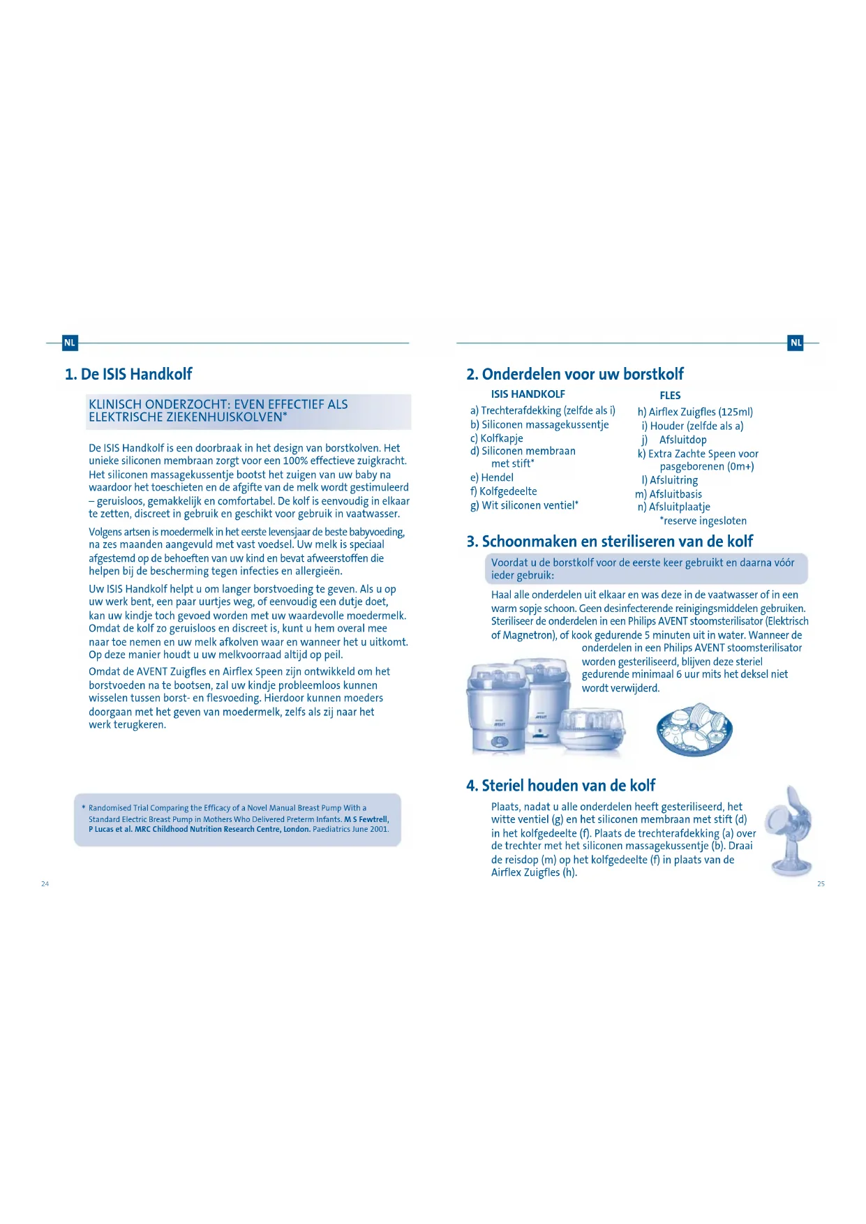 Neem de tijd om deze instructies aandachtig door te lezen VOORDAT u de Philips AVENT ISIS Handkolf voor de eerste keer gaat gebruiken. Als u deze gebruikshandleiding ooit kwijt raakt, dan vindt u die ook als download op onze website: www.philips.com/AVENT 9583-ISIS-FRDENLIT-txt_0210.qxd 25/9/07 14:34 Page 2224 NLNL