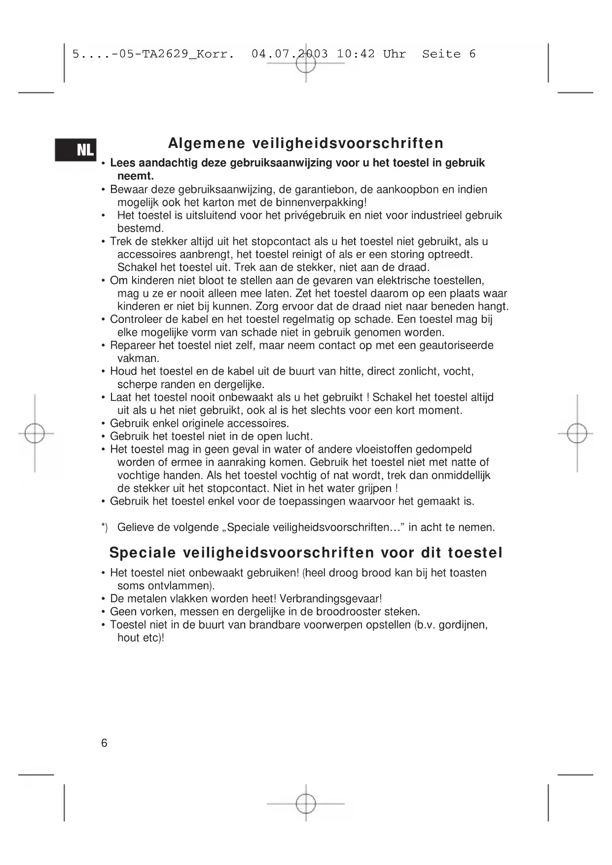 - Het toestel niet onbewaakt gebruiken! (heel droog brood kan bij het toasten soms ontvlammen).