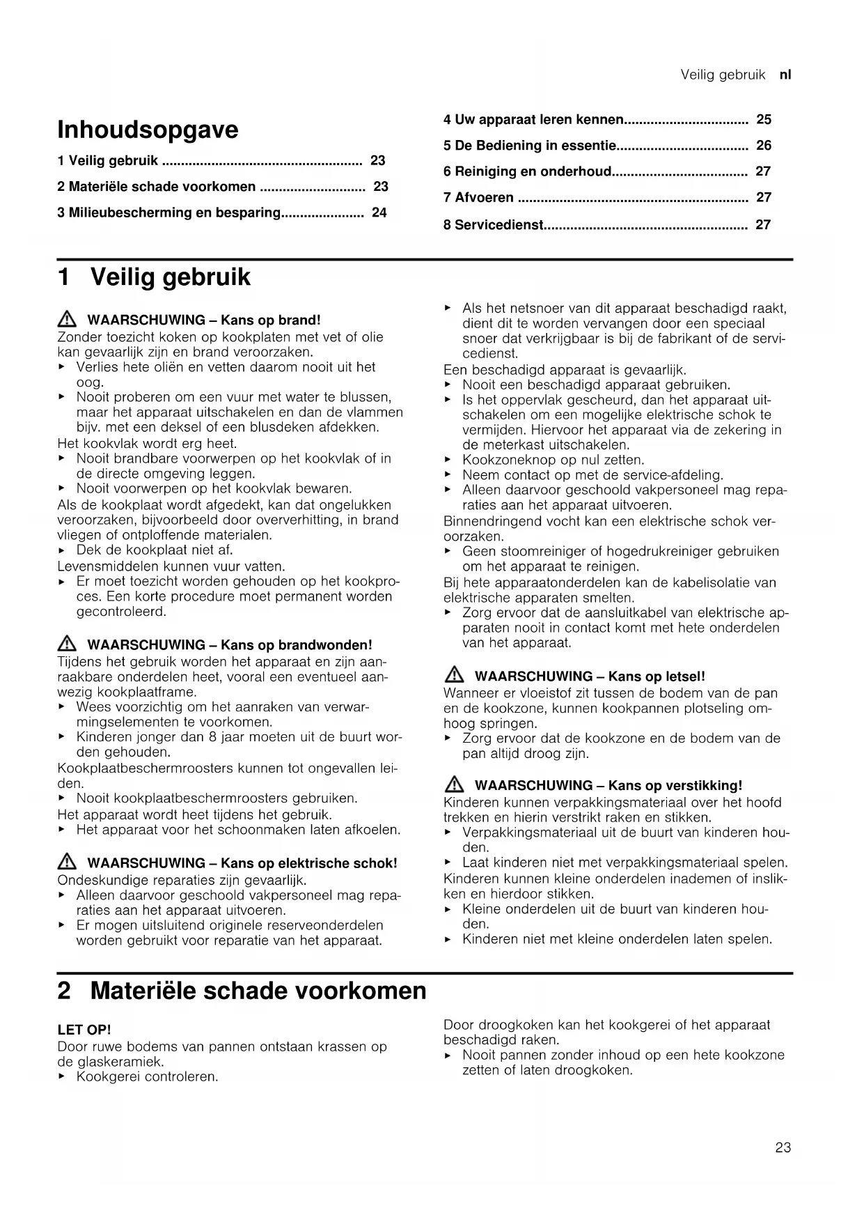 Geen harde of puntige voorwerpen op de kookplaat laten vallen. Hittegevoelige materialen smelten op de hete kookzo- nes.