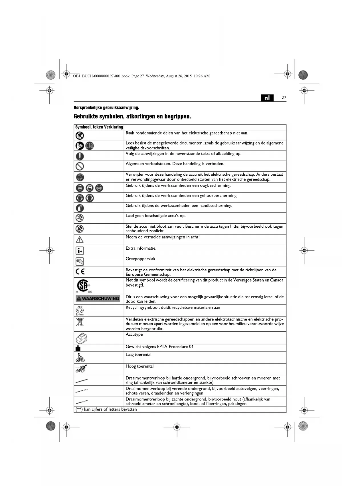 „Algemene veiligheidsvoorschriften“ (documentnummer 3 41 30 054 06 1) grondig heeft gelezen en volledig heeft begrepen. Bewaar deze documentatie voor later gebruik en geef ze mee wanneer u het elektrische gereedschap doorgeeft of verkoopt.