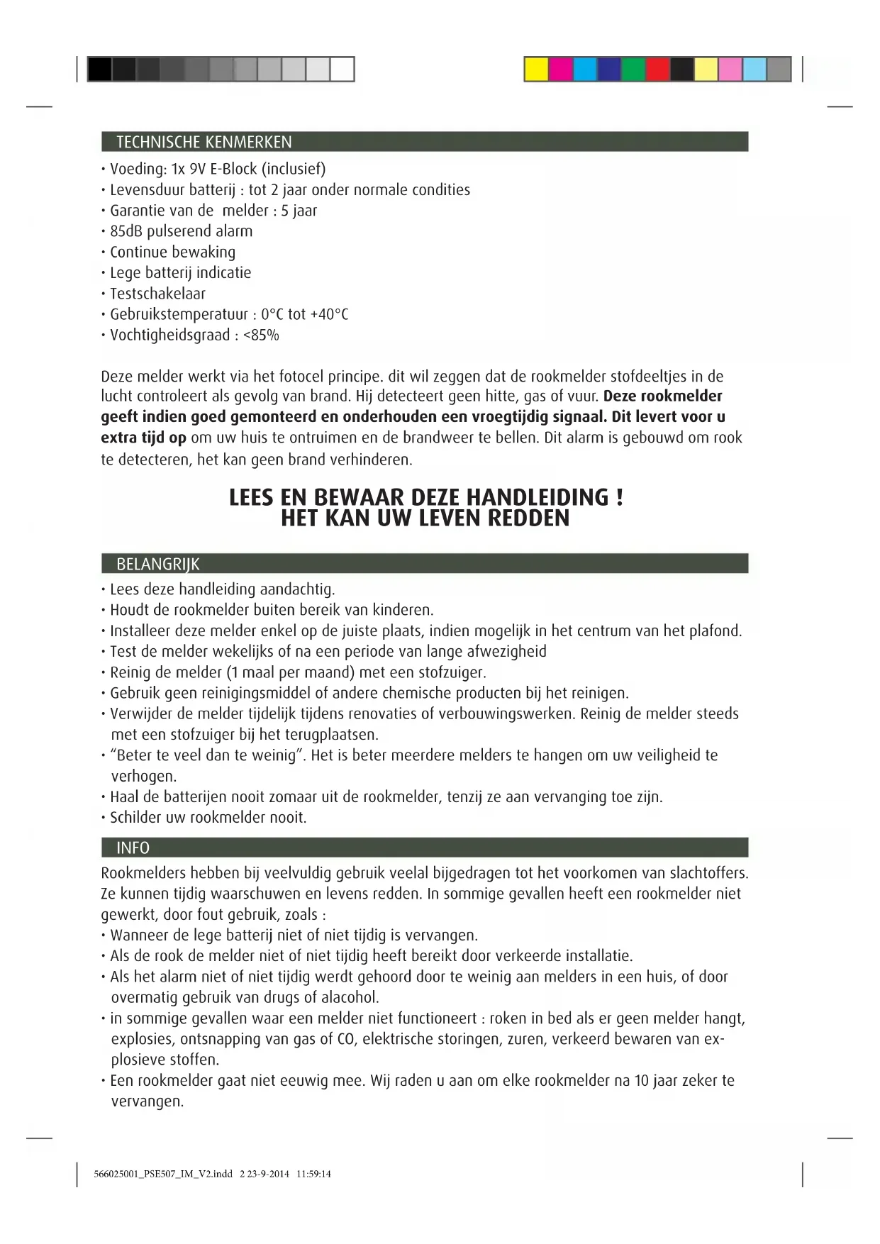 - Een rookmelder gaat nicht eeuwig mee. Wij raden u aan om elke rookmelder na 10aar zeker te verrangen.