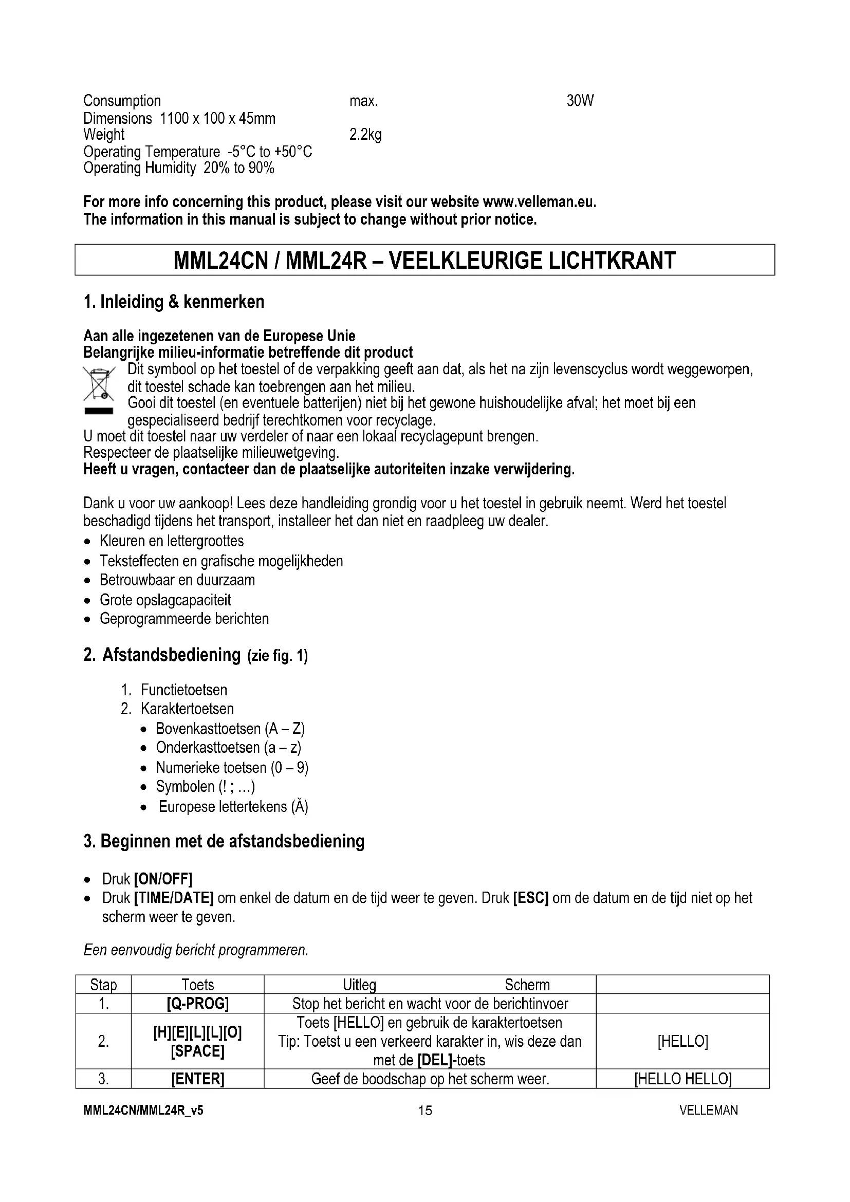 Vind de handleiding van het apparaat gratis MML24R VELLEMAN in PDF-formaat.