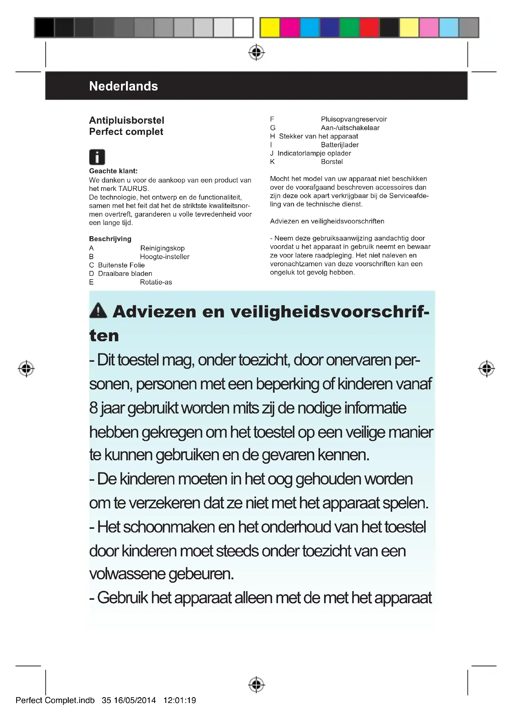 Vind de handleiding van het apparaat gratis 955100 TAURUS in PDF-formaat.