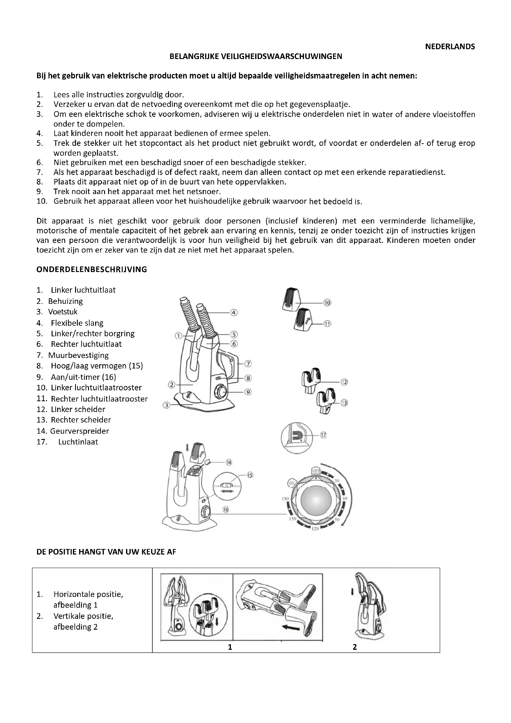 Bij het gebruik van elektrische producten moet u altijd bepaalde veiligheidsmaatregelen in acht nemen: