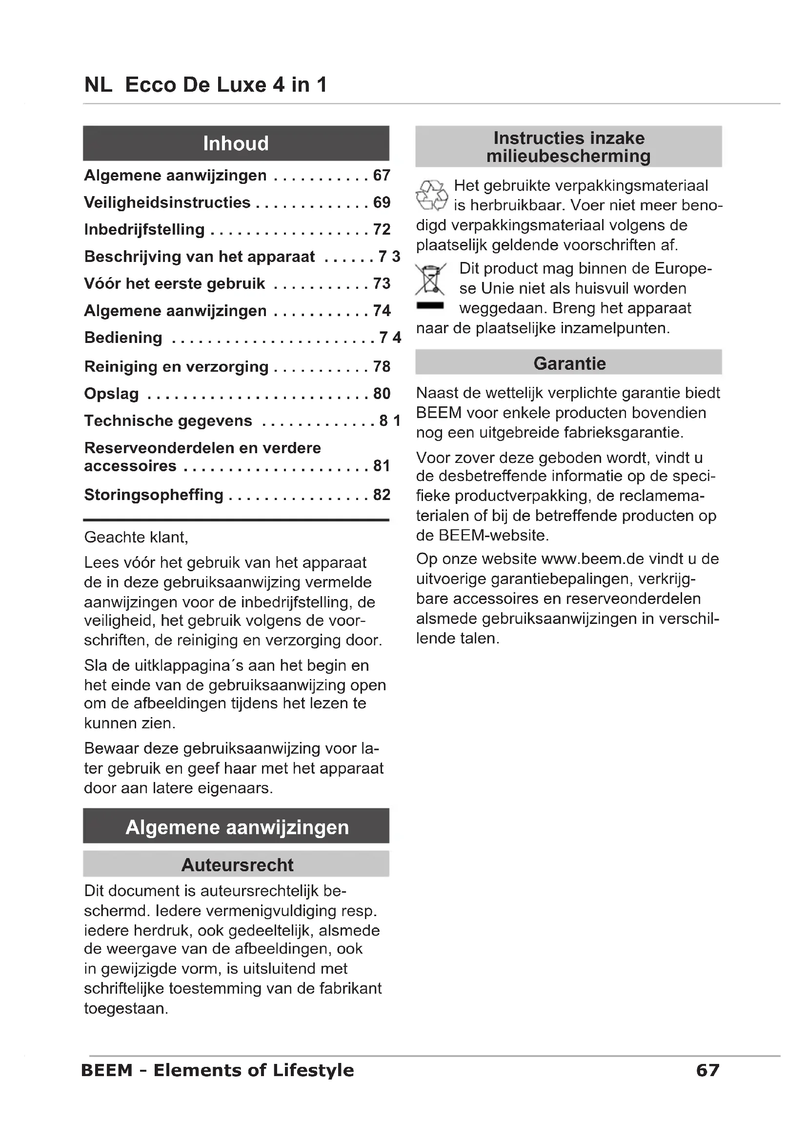 GEBRUIKSAANWIJZING Ecco De Luxe 4 in 1 BEEM