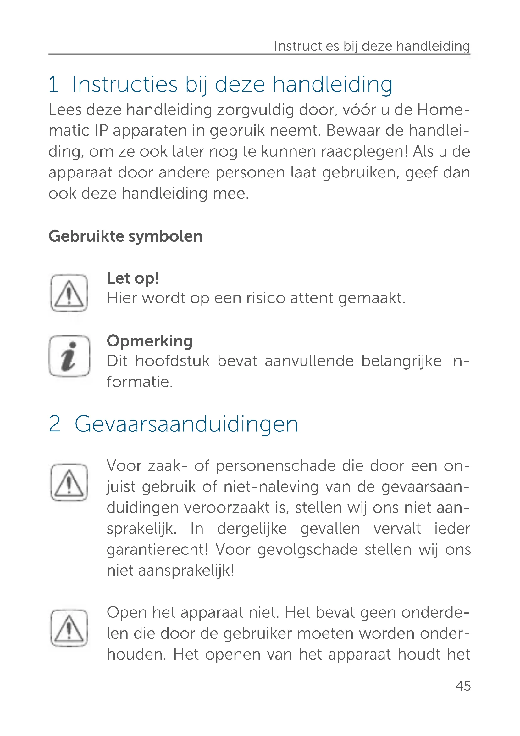 Lees deze handleiding zorgvuldig door,*vór u de Homematic IP apparaten in gebruik neemt. Bewaar de handleiding, om ze ook later nog te kunnen raadplegen! Als u de apparaat door andere PersonenThat gebruiken, geef dan ook deze handleiding mee.