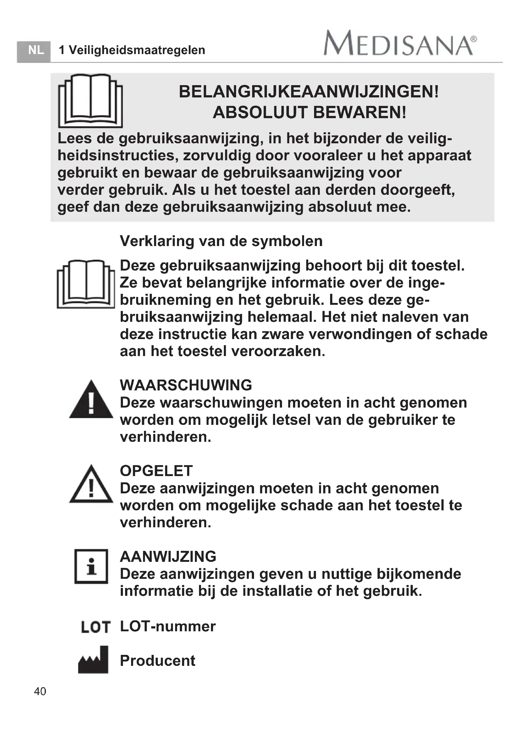 Lees de gebruiksaanwijzing, in het bijzonder de veiligheidsinstructies, zorvuldig door vooraleer u het apparaat gebruikt en bewaar de gebruiksaanwijzing voor verder gebruik. Als u het toestel aan derden doorgeeft, geef dan deze gebruiksaanwijzing absolut u mee.