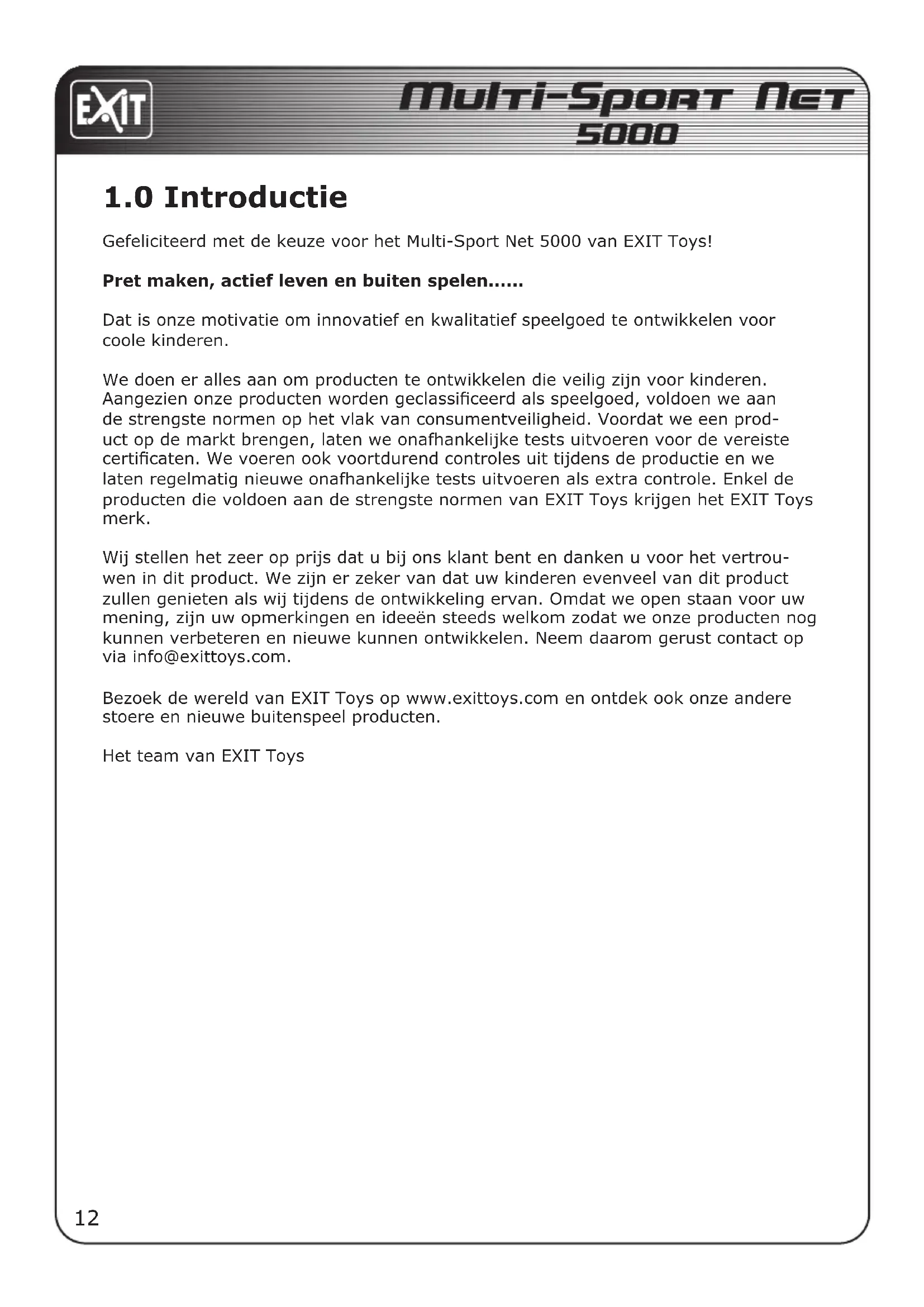 Gefeliciteerd met de keuze voor het Multi-Sport Net 5000 van EXIT Toys!