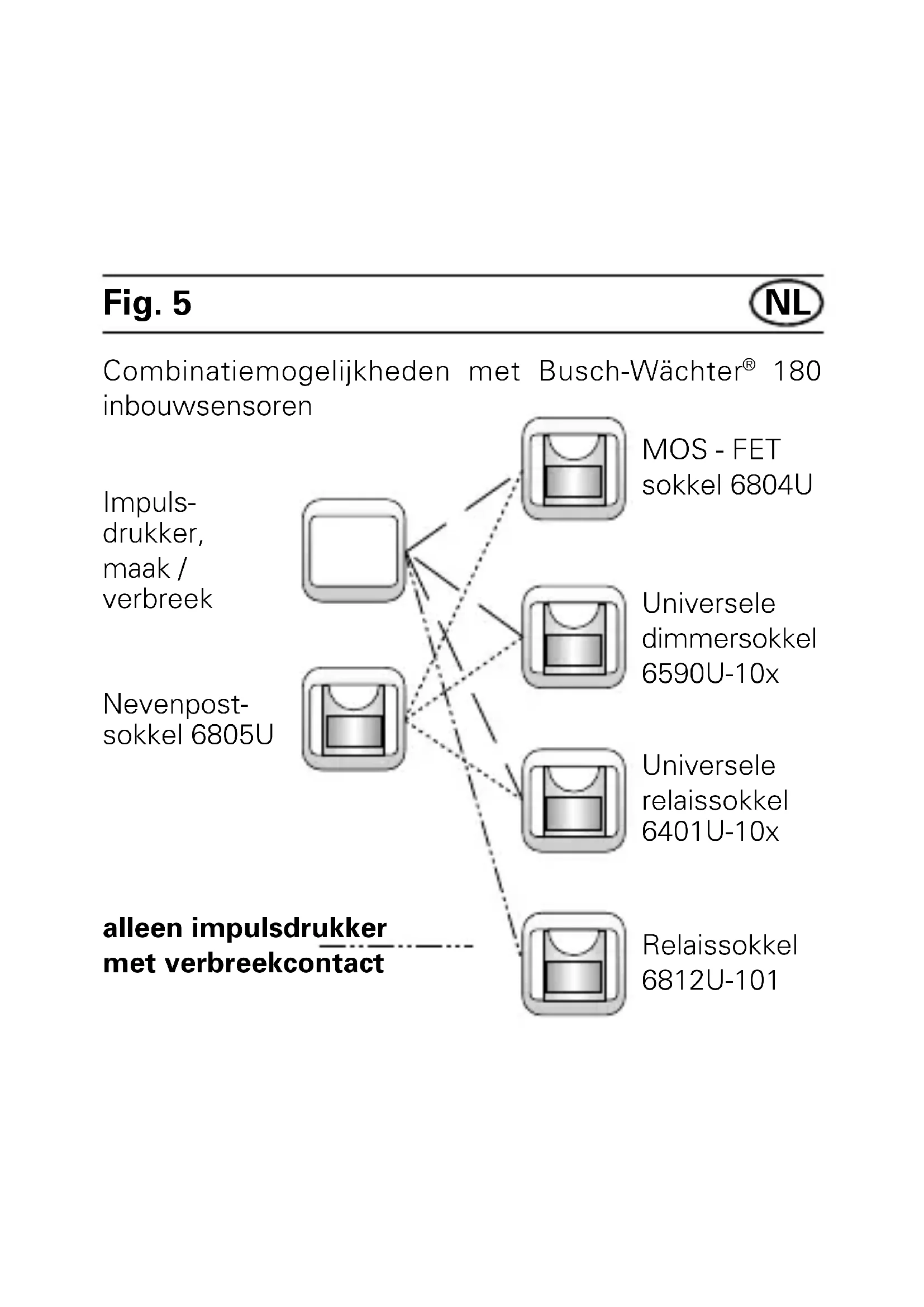 Bij verlichte impulsdrukkers können uitsluitend impulsdrukkers met afzonderlijke N-aansluiting worden gebruikt. Een contactparallele verlichting is Niet toegestaan!