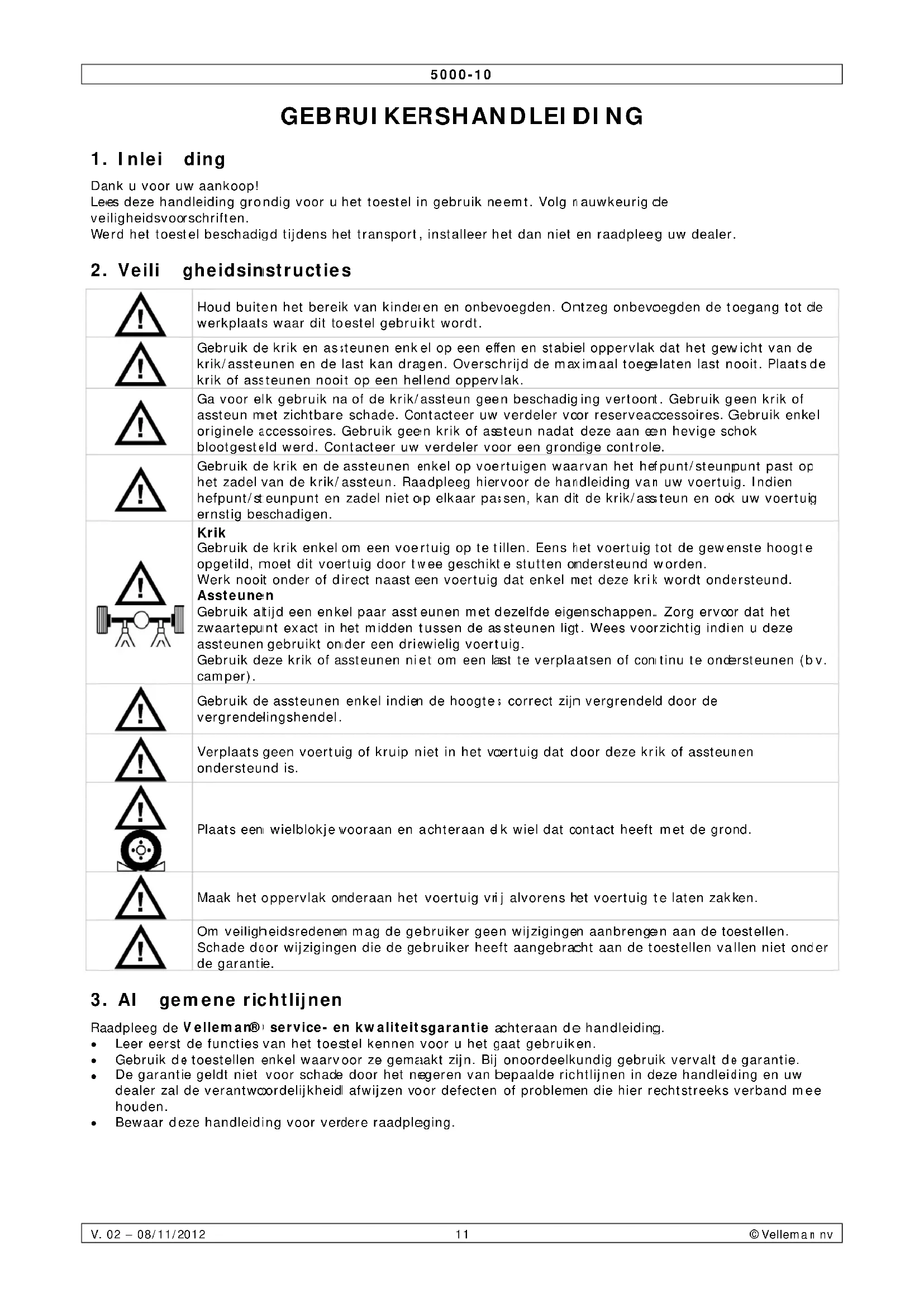 Raadpleeg de Velleman® service- en kwaliteitsgarantie achteraan de handleiding.