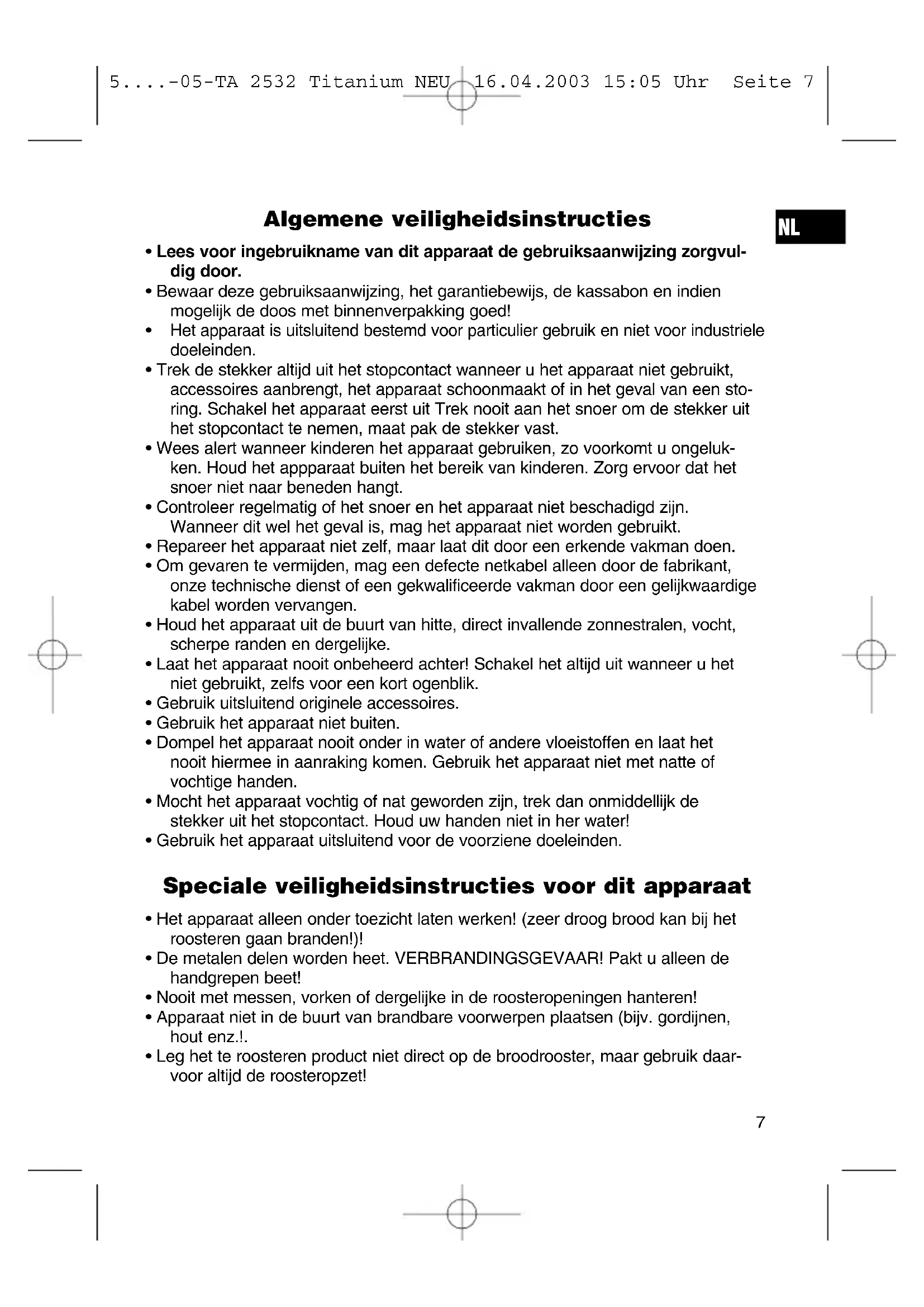 - Het apparaat alleen onder toezicht laten werken! (zeer droog brood kan bij het roosteren gaan branden!)!