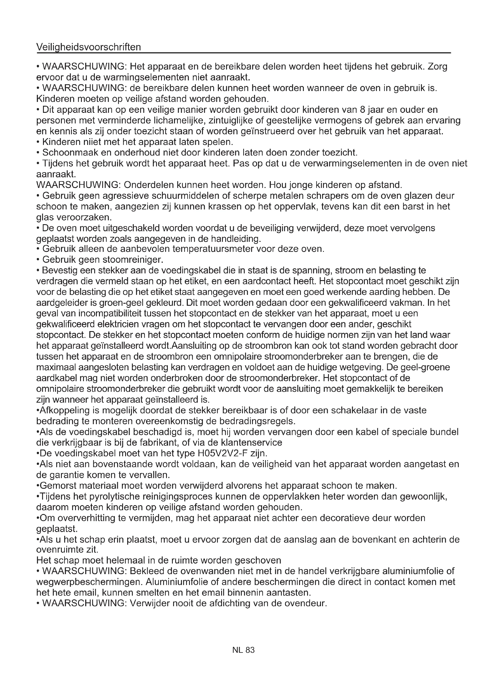 - WAARSCHUWING: Verwijder nooit de afdichting van de ovendeur. VeiligheidsvoorschriftenOverzicht NL 84 Algemene Instructies