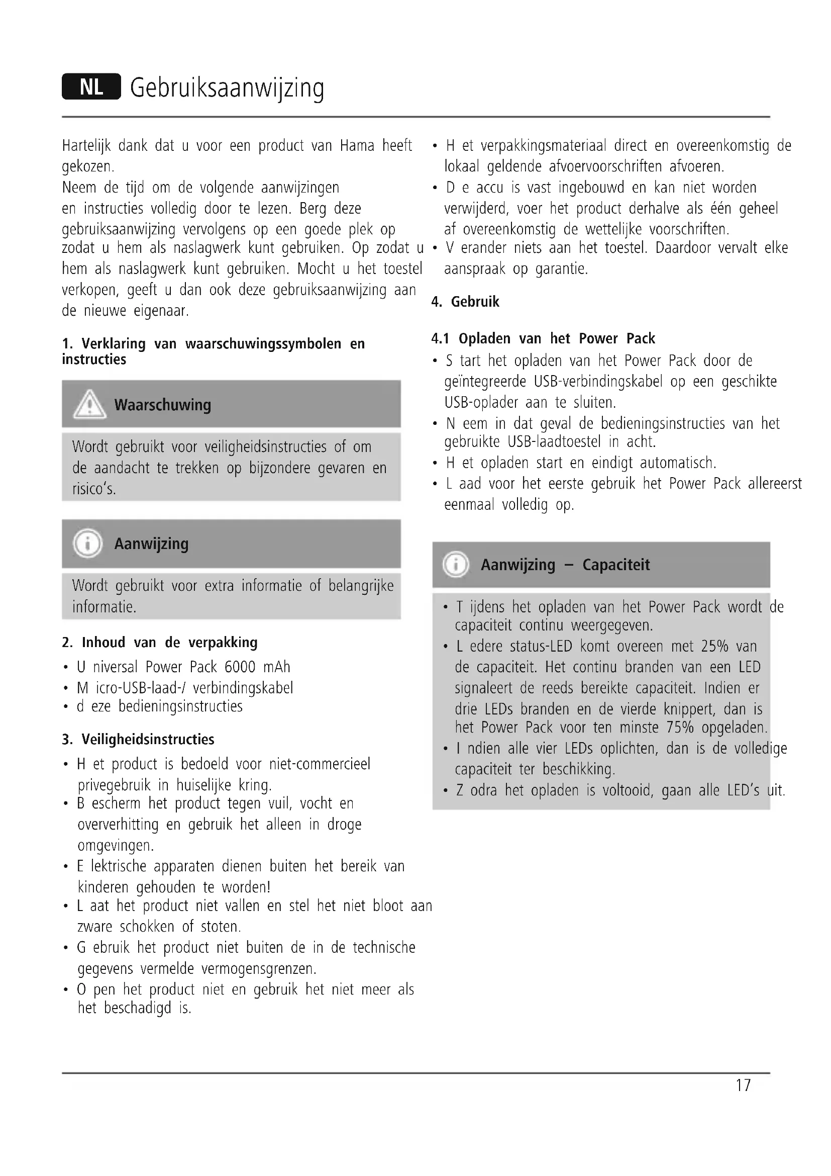 - Zodra het opladen is voltooid, gaan alle LED‘s uit. N Gebruiksaanwijzing18 Waarschuwing – accu