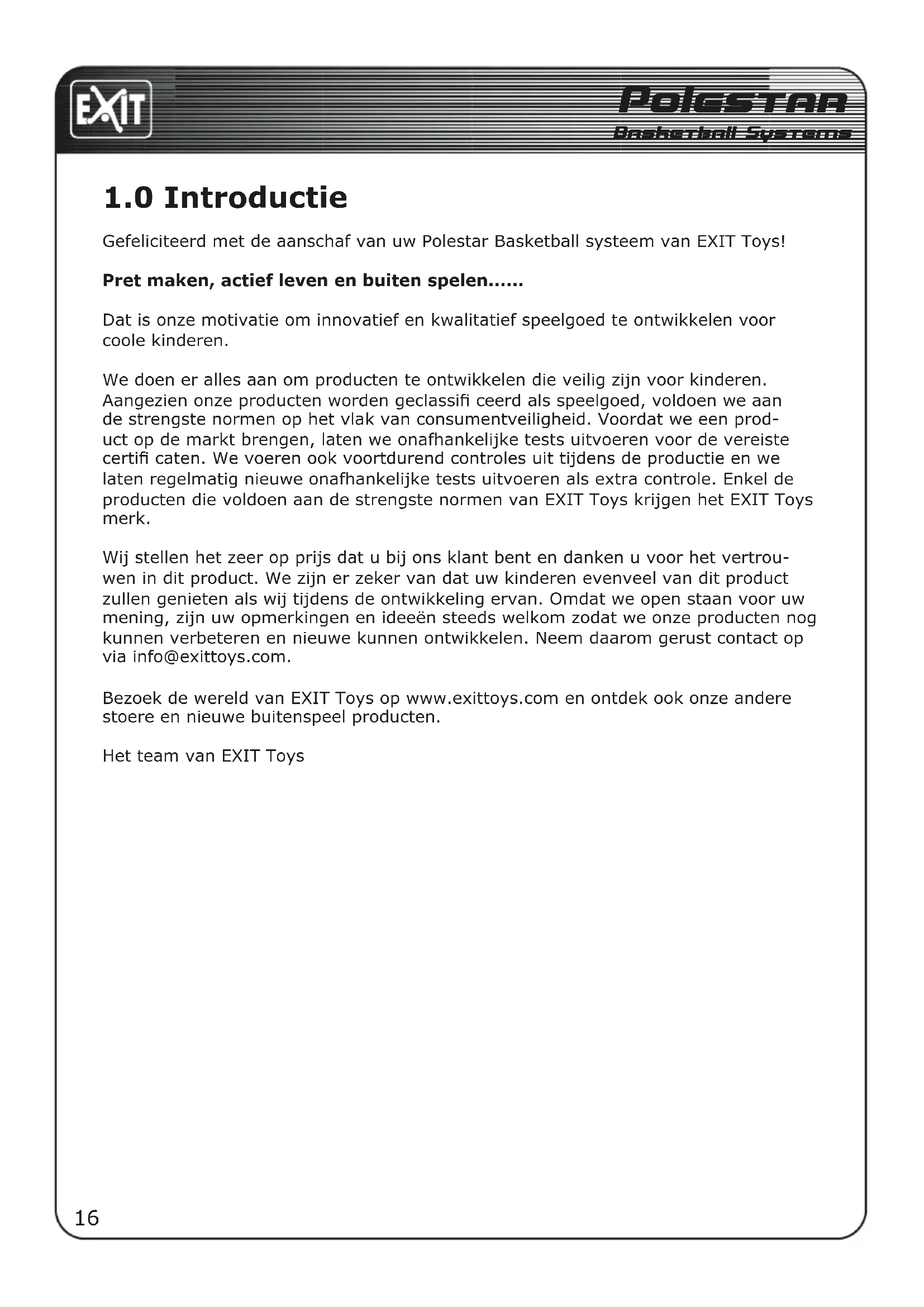 Gefeliciteerd met de aanschaft van uw Polestar Basketball systemen van EXIT Toys!
