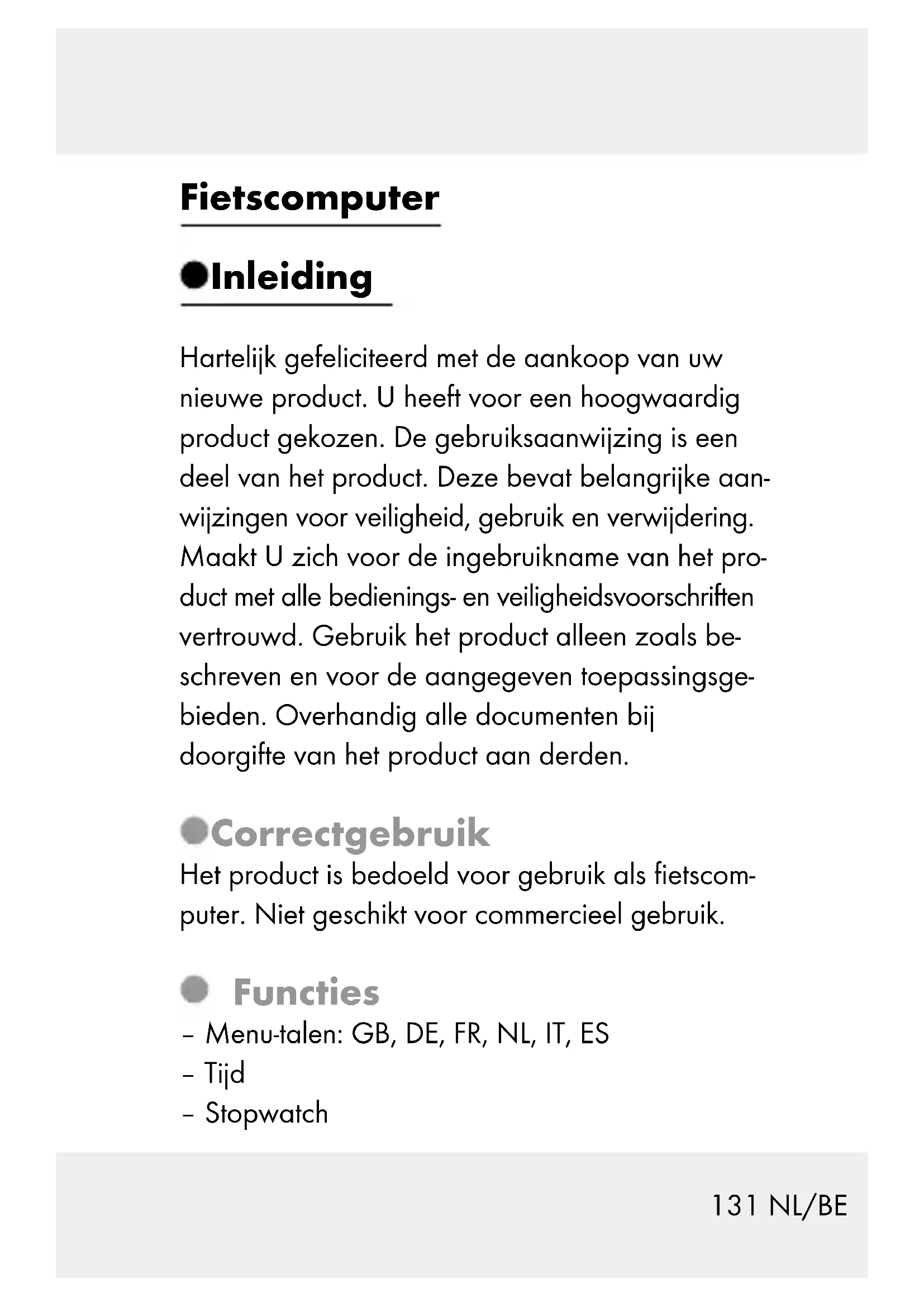 Het product is bedoeld voor gebruik als fietscomputer. Niet geschikt voor commercieel gebruik.
