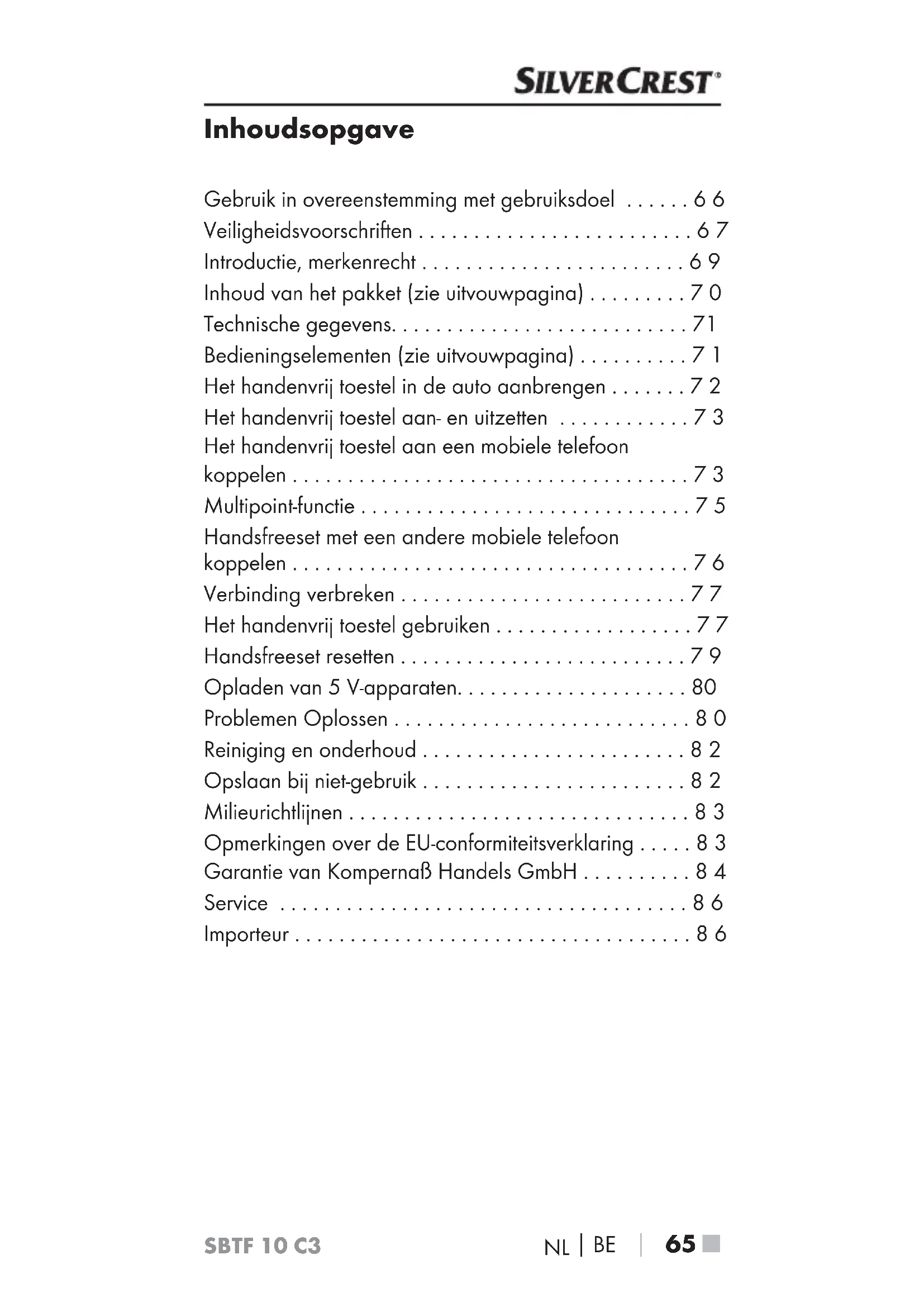 - Veiligheidsvoorschriften p. 67