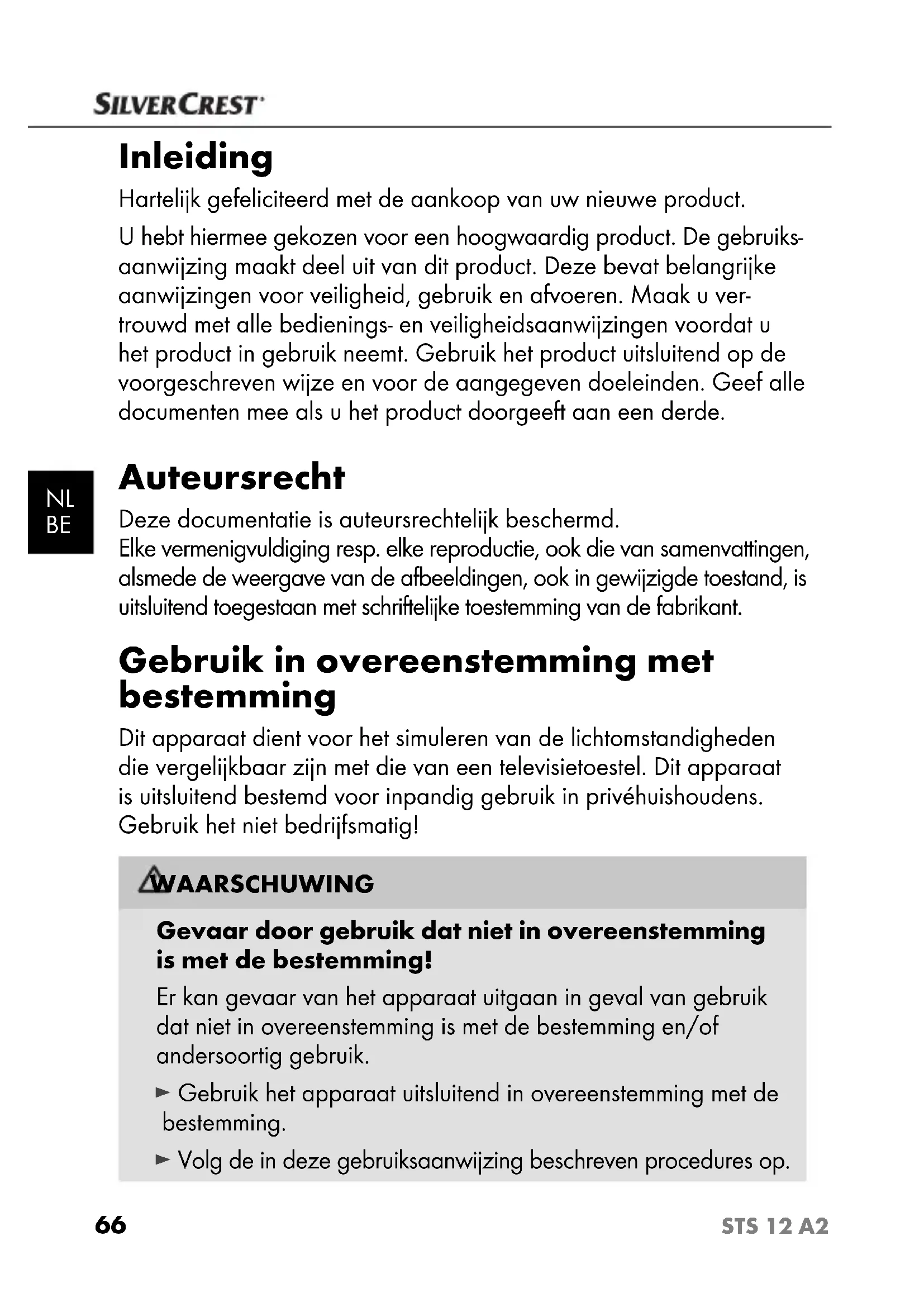 GEBRUIKSAANWIJZING STS 12 A2 SILVERCREST