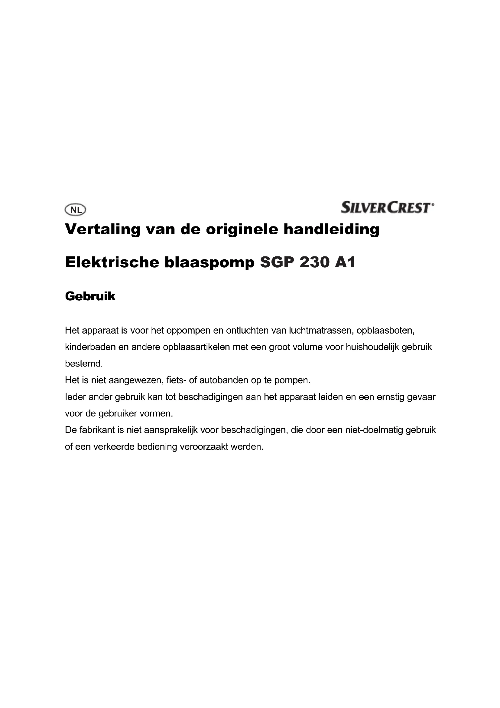 GEBRUIKSAANWIJZING SGP 230 A1 SILVERCREST