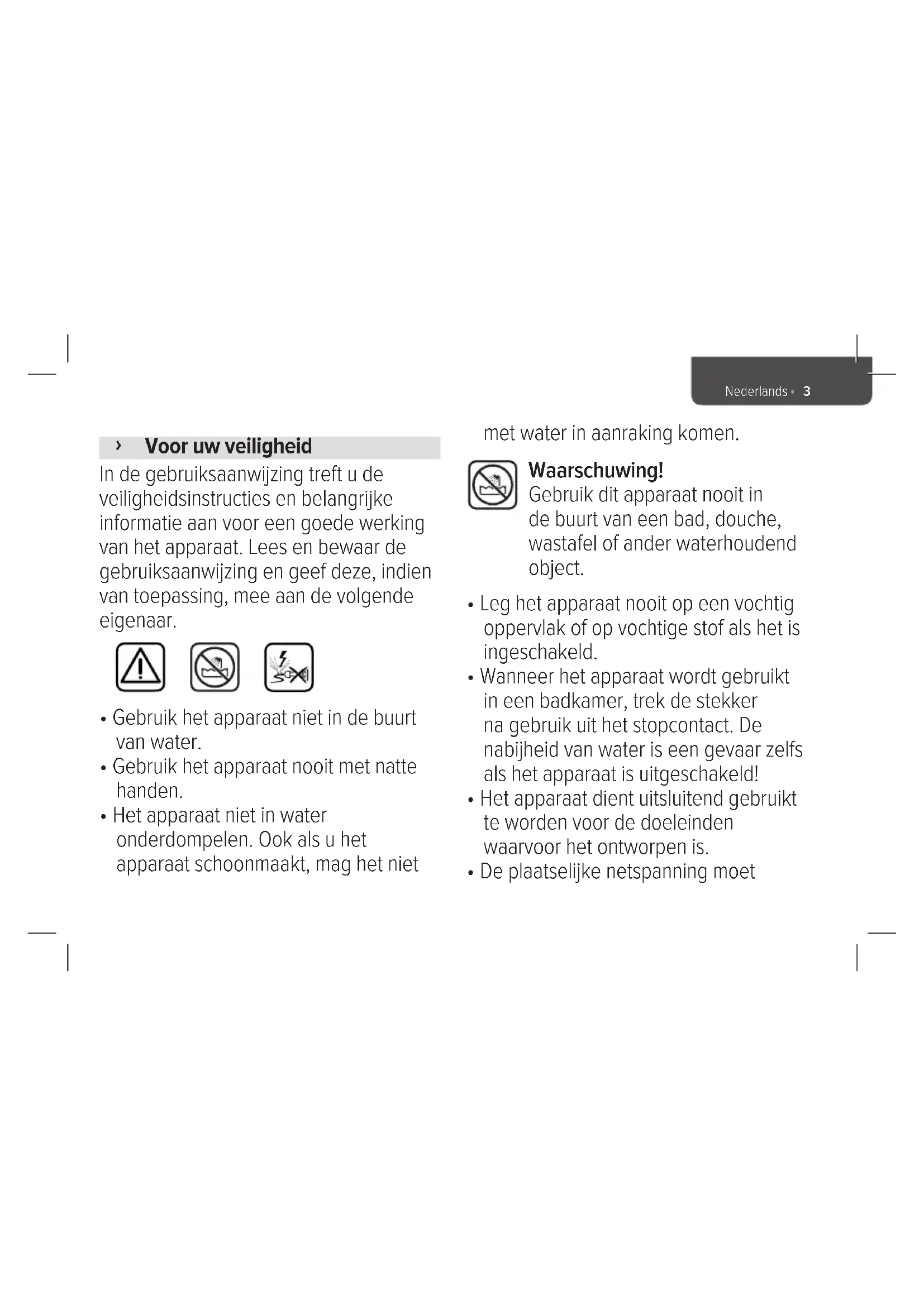- Gebruik het apparaat Niet in de buurt van water.