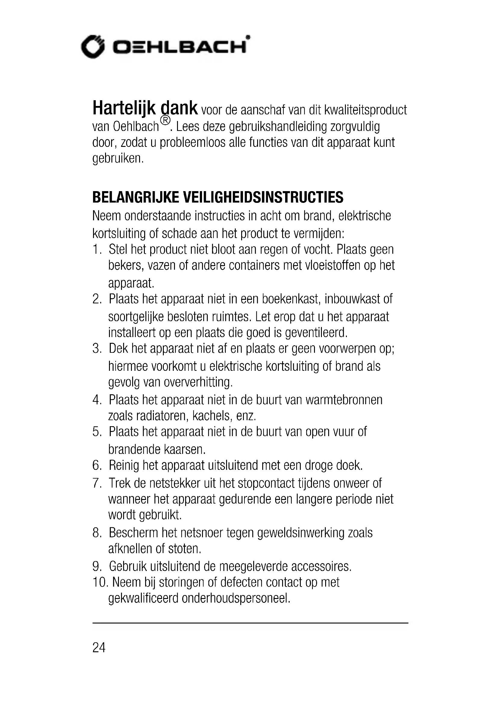 - Remboursement en cas de réparation par des tiers sans notre accord préalabl24 Hartelijk dank voor de aanschaf van dit kwaliteitsproduct van Oehlbach