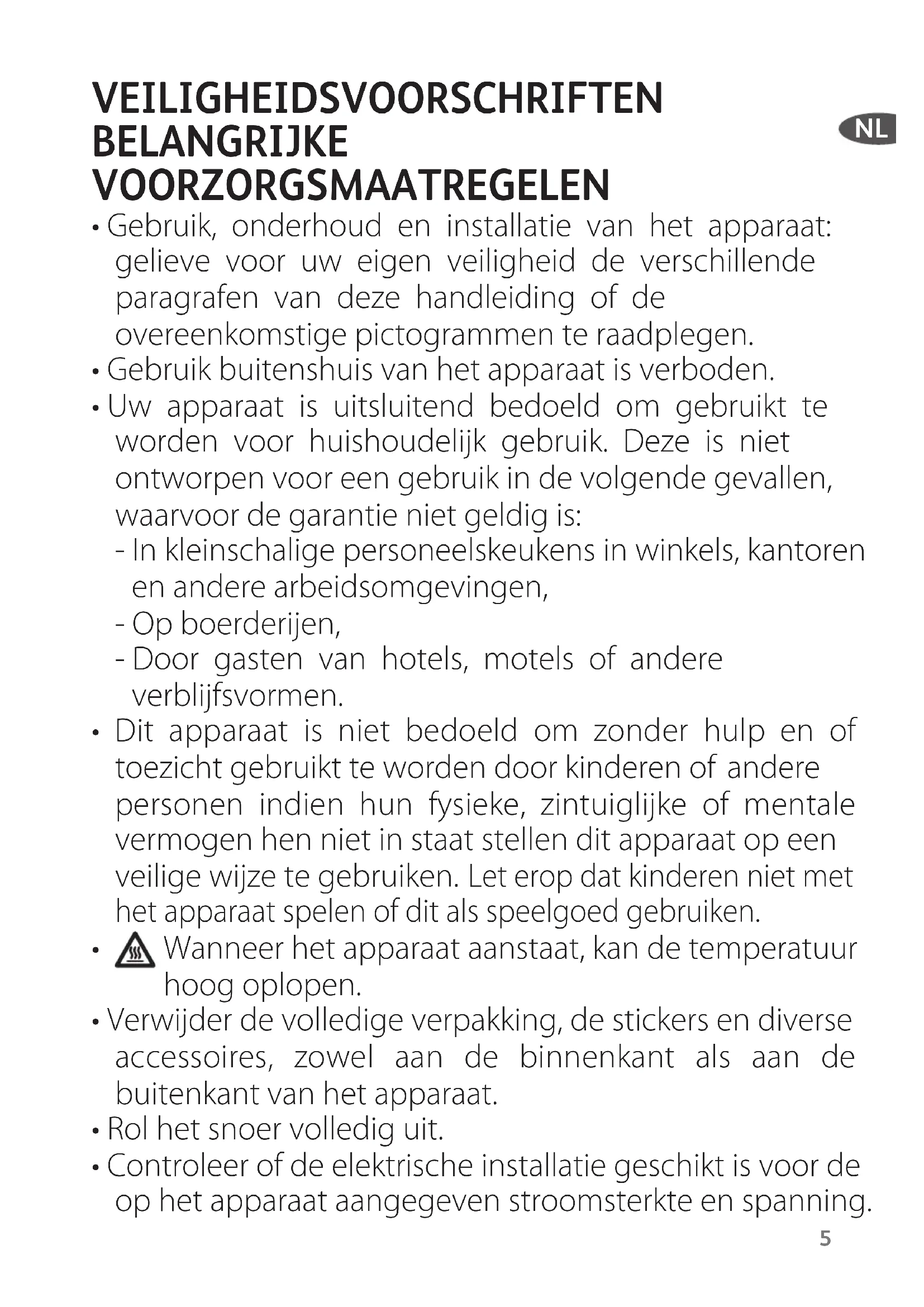 - Het warme apparaat niet verplaatsen als het aanstaat.