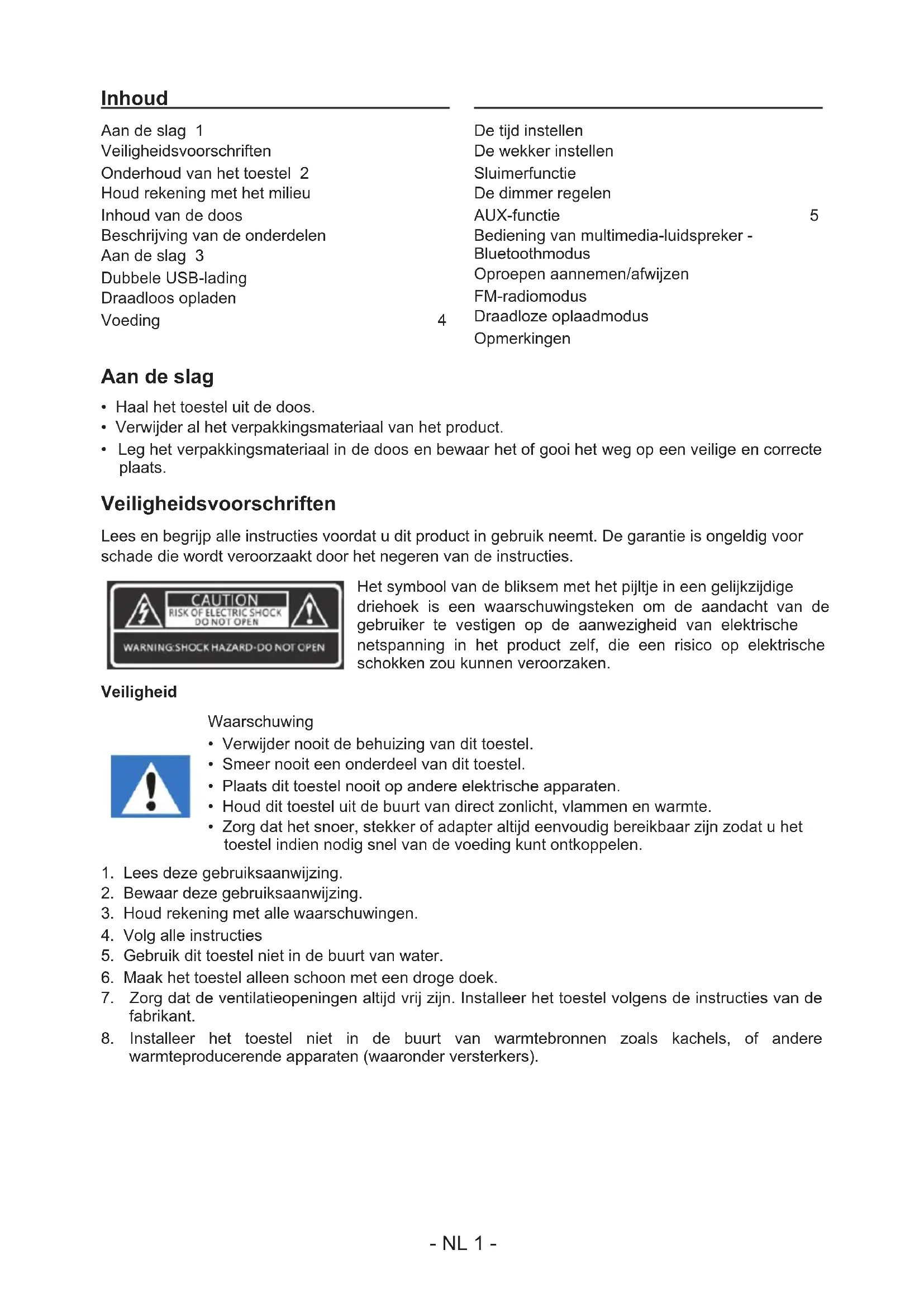 - Trek als het stopcontact als het toestel nicht worden gebruikt en voor reiniging.